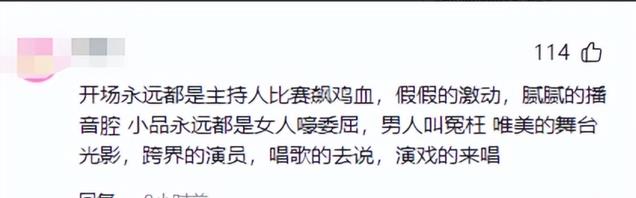 “既不搞笑,也不温馨,这种尴尬算哪门子的创新?”更令人费解的是,演员还突然开始唱歌,甚至有网友吐槽:“演员不会唱歌非要唱,歌手不会演小品非要演,强行跨界,尬得我脚趾都要抠出三室一厅了。”