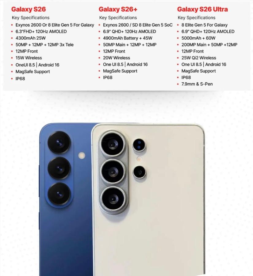 在这种背景下,三星Galaxy S26承载的压力前所未有。它不仅要面对苹果的技术优势,还要应对中国品牌的性价比攻势。但目前的曝光信息显示,S26似乎难以担此重任。