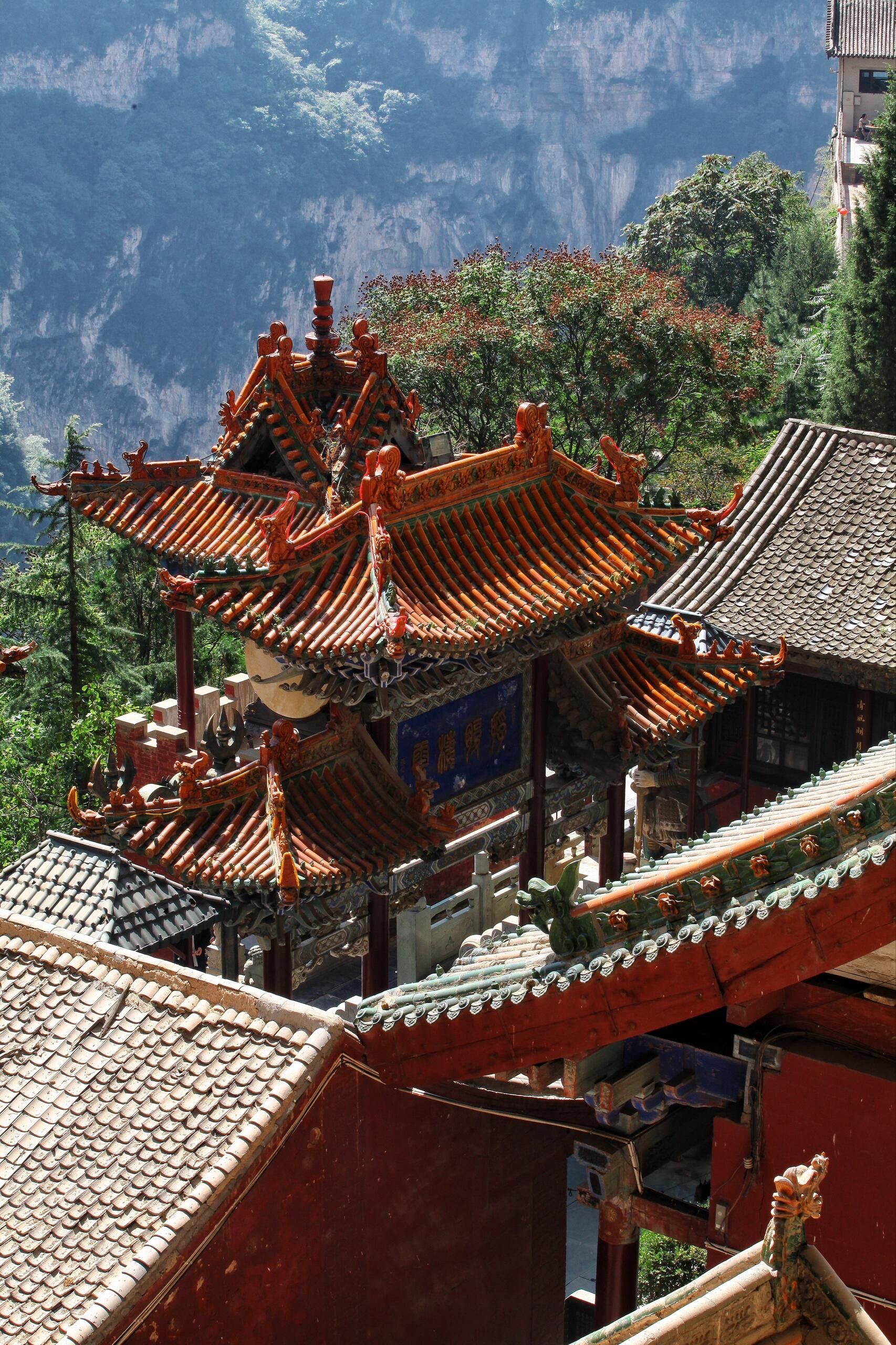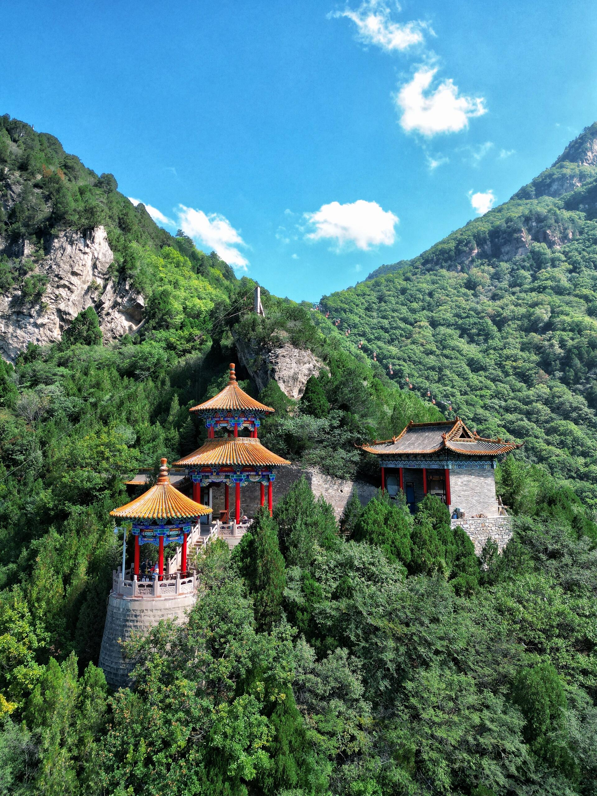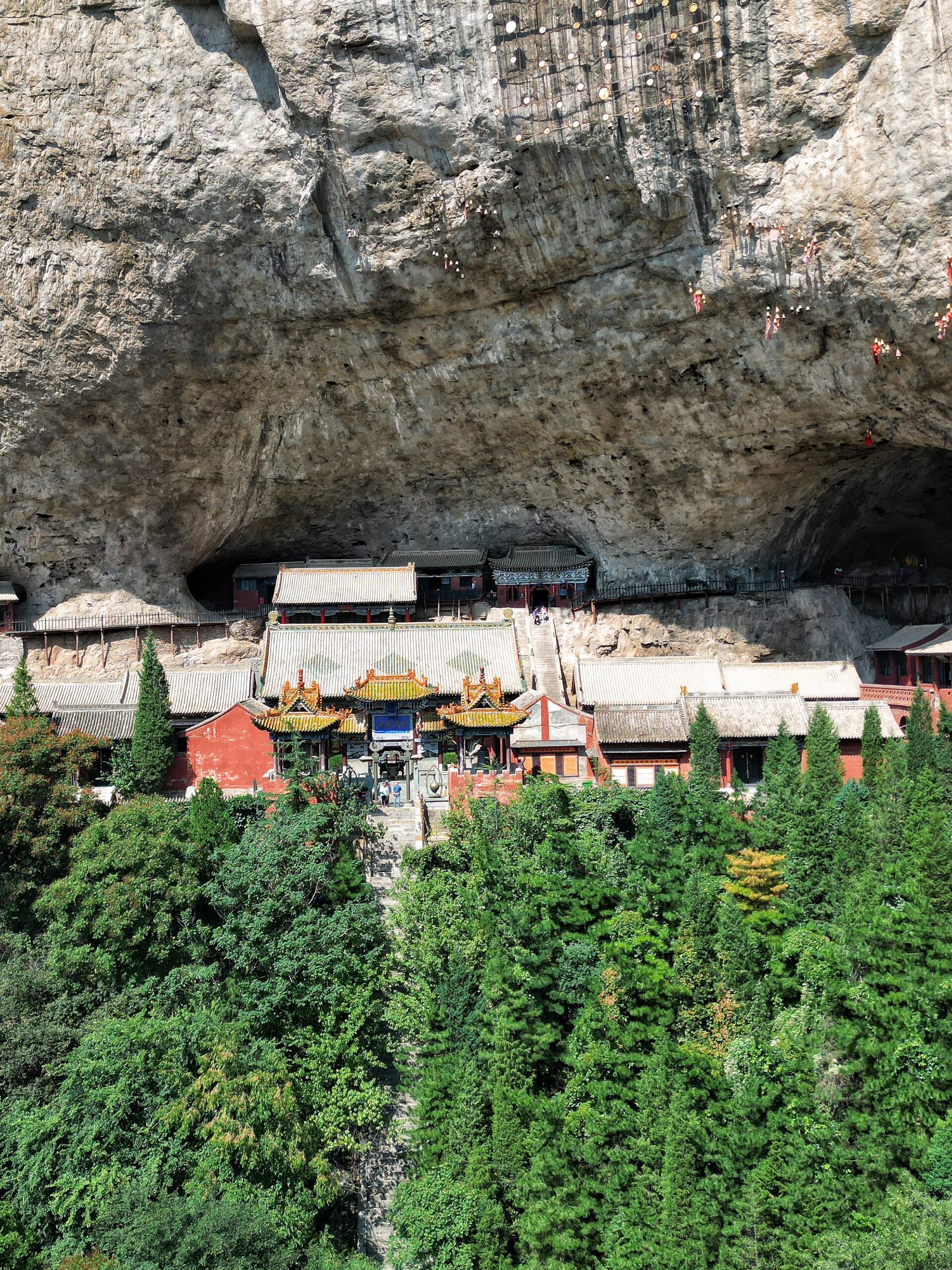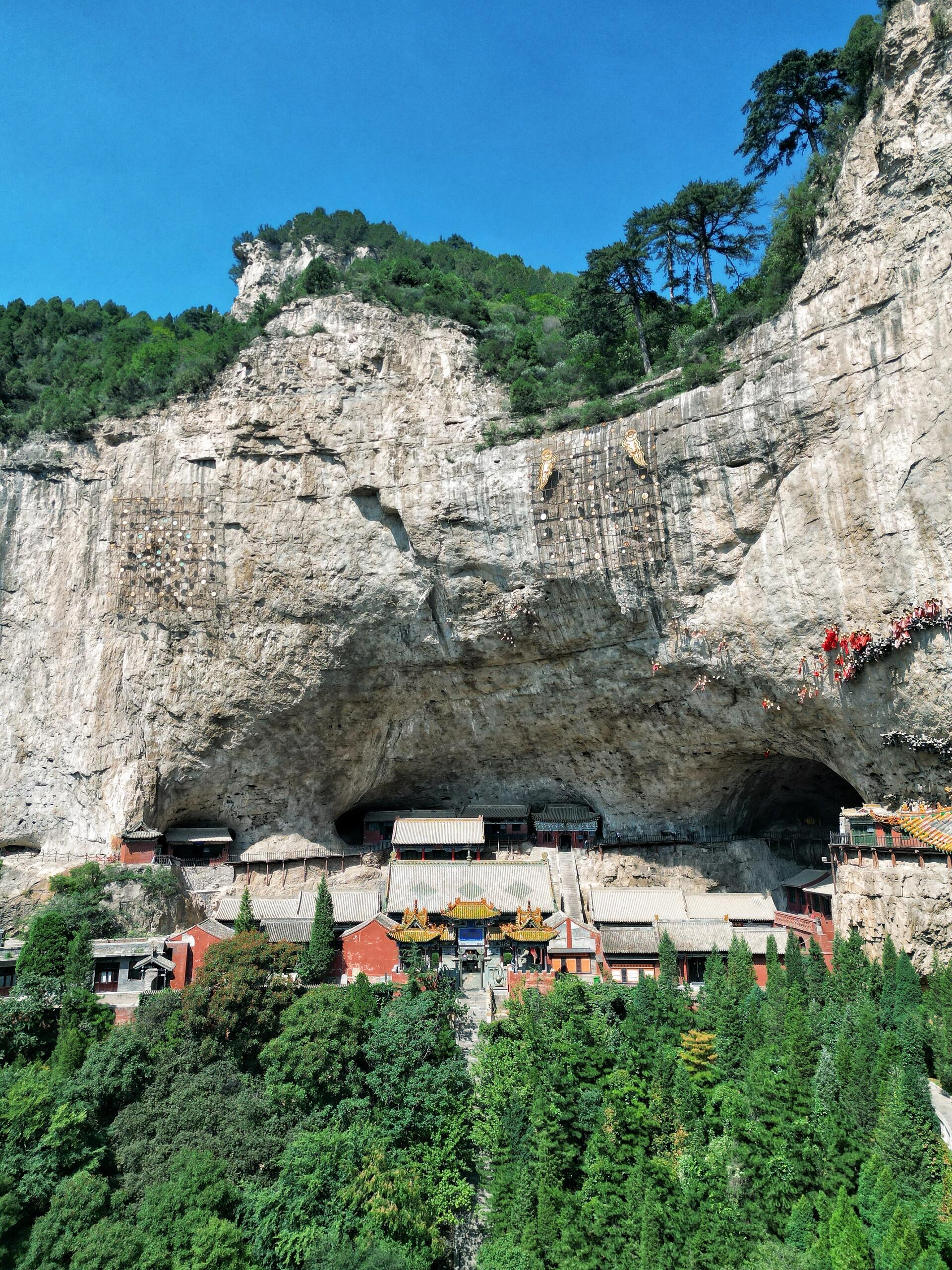 如果说介子推的故事是绵山的精神骨骼,那么山中的建筑则是它的血肉肌理。从北魏的晨钟暮鼓到盛唐的香火缭绕,绵山始终是信仰者的朝圣之地。但最让人惊叹的,是那些悬在崖壁上的道观群落,它们像是被山神随手搁置的积木,却在千年风雨中演绎着东方建筑的奇迹。