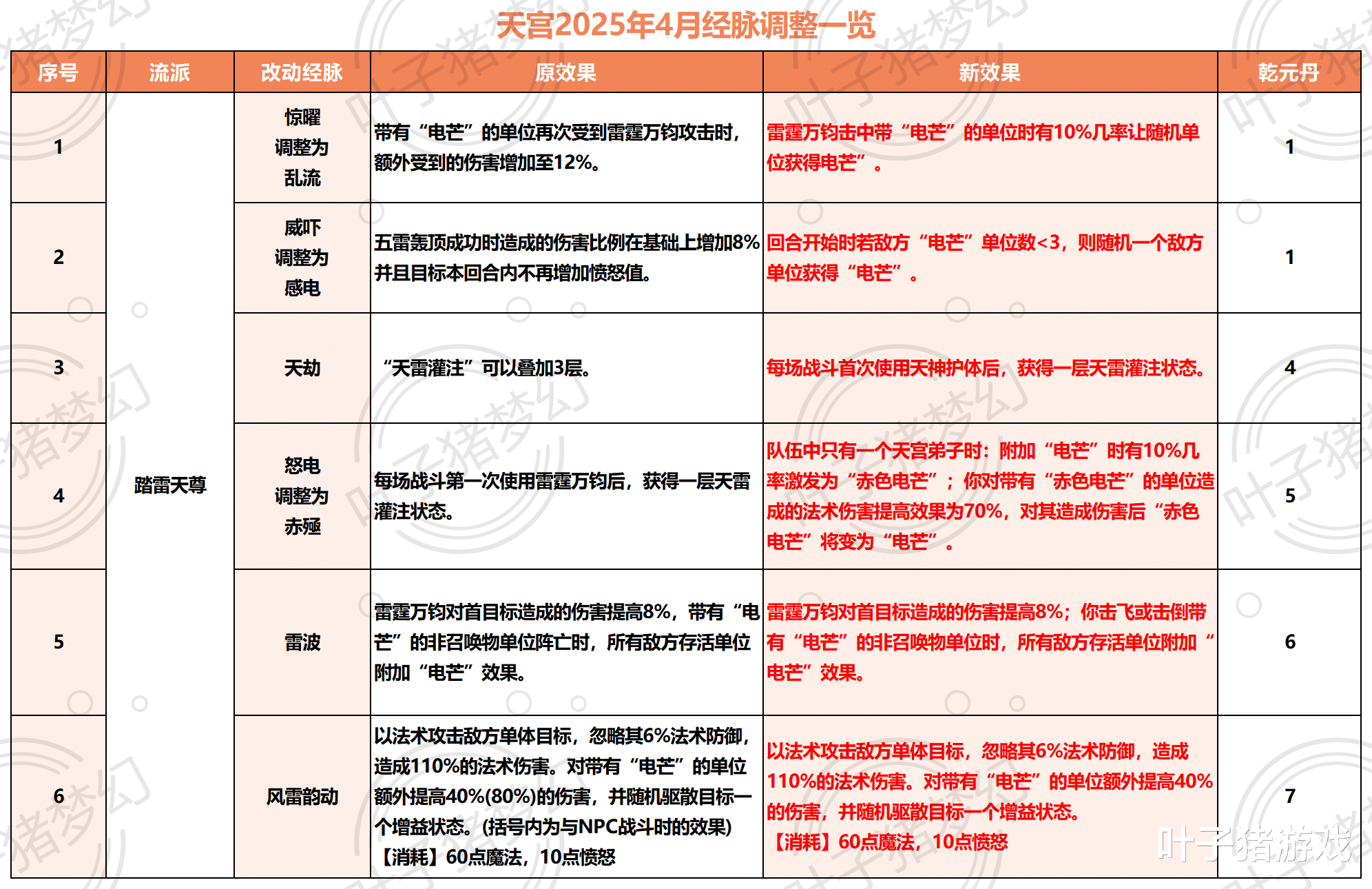 天宫在本次调整中,提升了“踏雷天尊”流派的输出能力。简单来说,这波提升不仅增加了天宫首回合群秒个数,带了“天神护体”套的玩家可以实现开局秒“6”;还提升了天宫的伤害,令其可以在附加“电芒”时有10%几率激发“紫色电芒”,对附加“紫色电芒”的单位造成伤害时,可以提升70%的伤害结果。