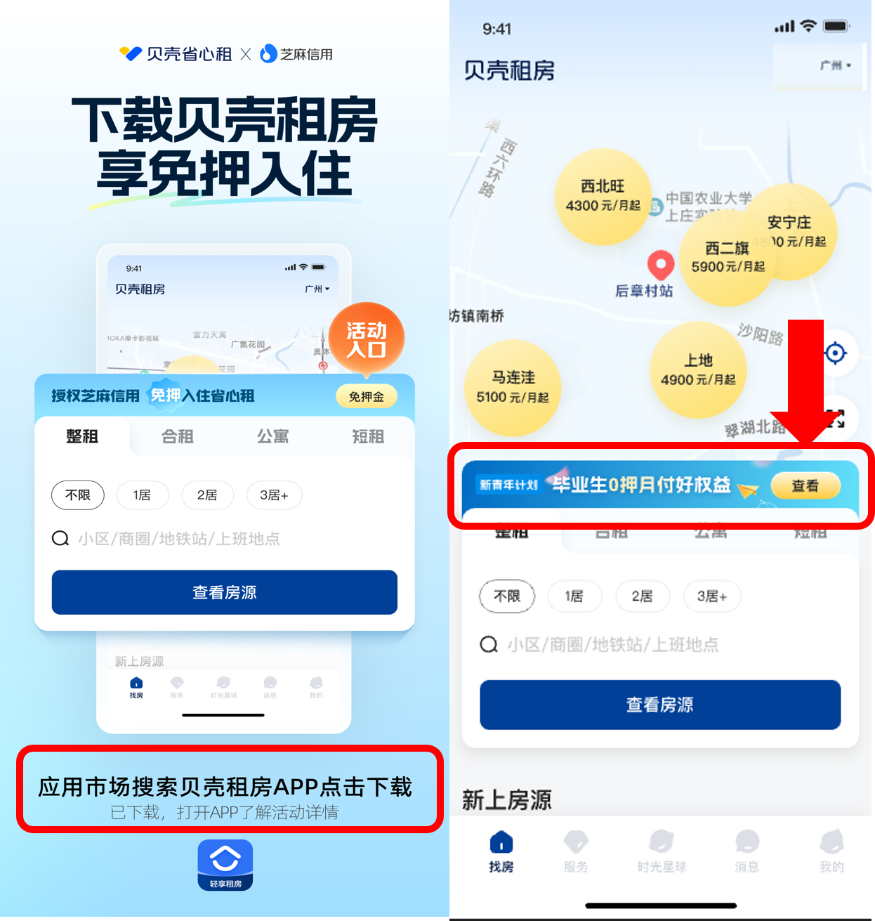 下载贝壳租房APP→毕业生学历认证信息获取→毕业生学历认证完成支付宝授权信用免押→领取联名权益