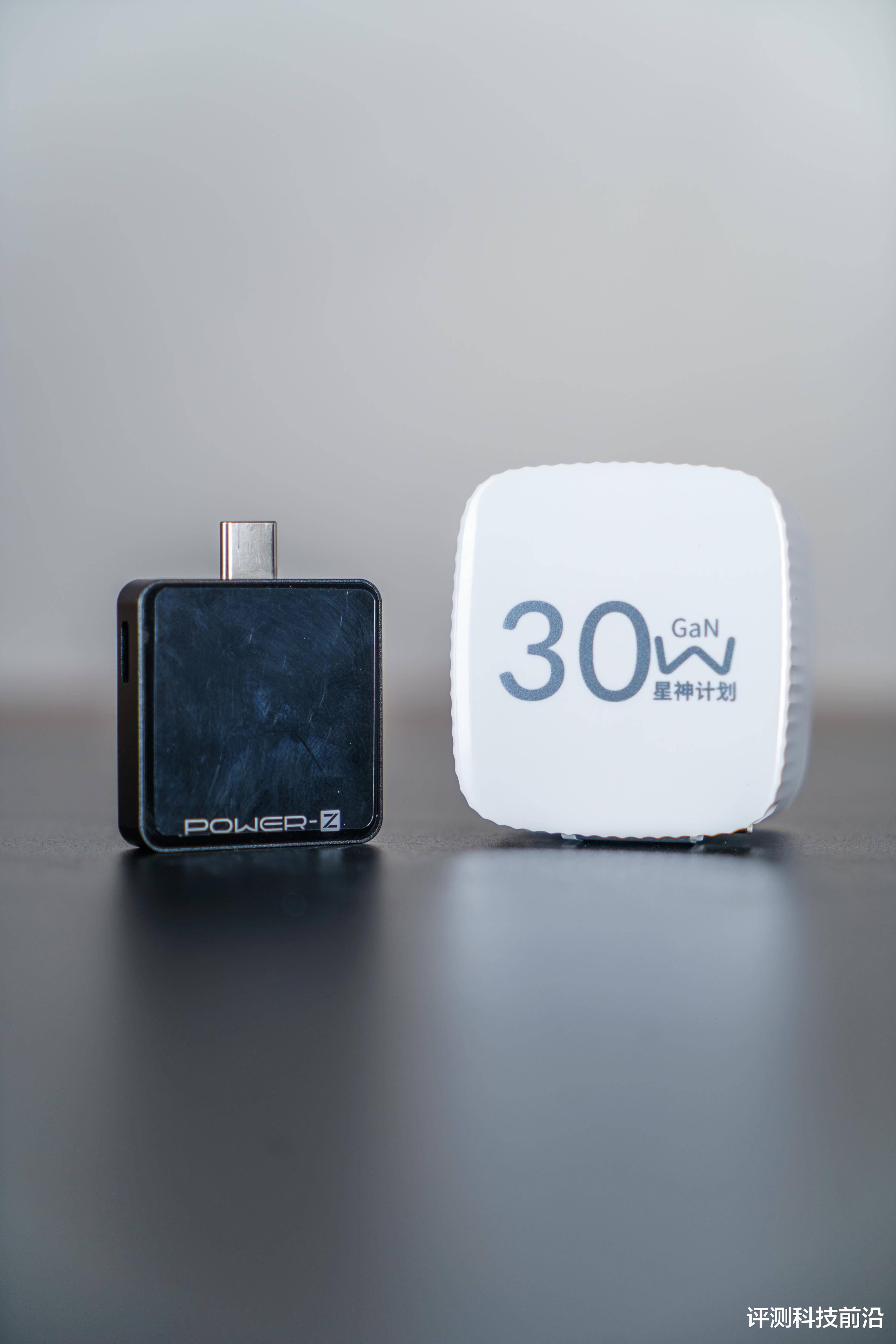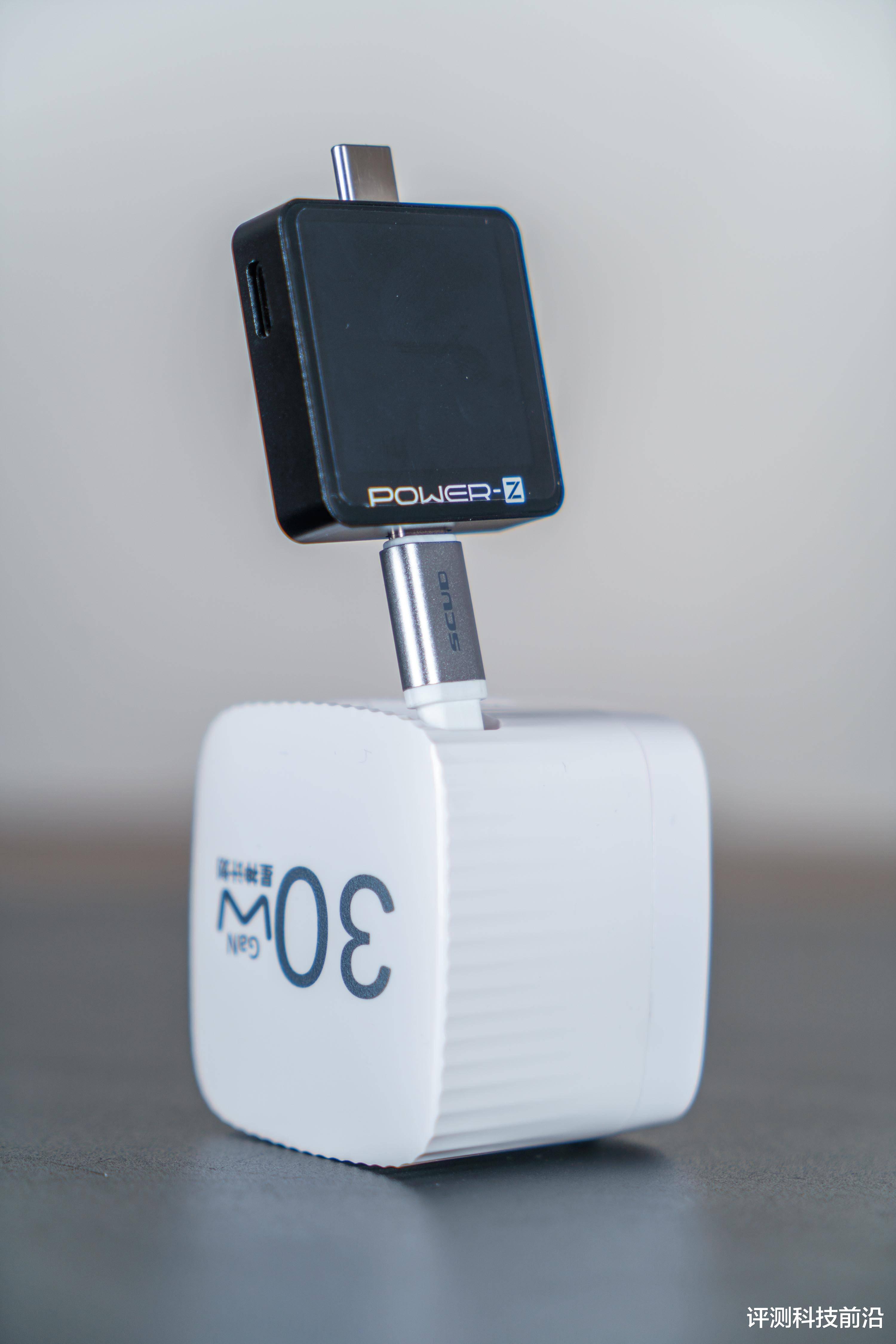 ▼量一下尺寸,大概是47.5mm*52mm*42mm的样子,30W还自带伸缩线能做到这个体积已经不错了,这都是得益于氮化镓技术和优秀的结构设计