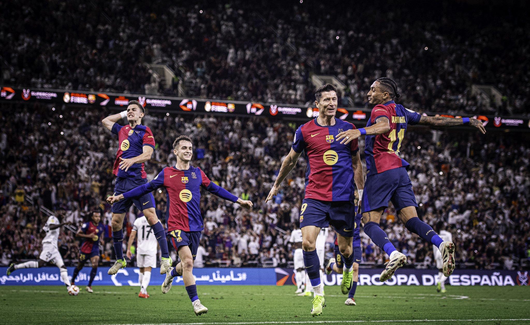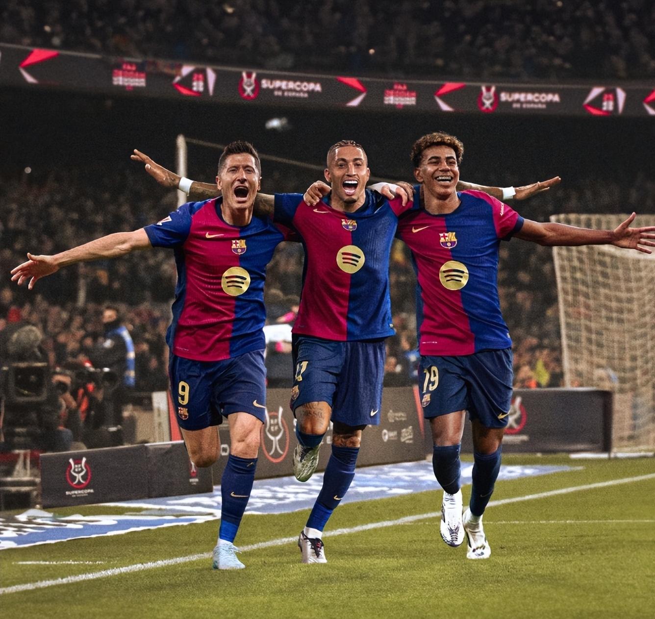 巴萨方面,莱万多夫斯基本赛季39场34球3助攻,拉菲尼亚41场27球19助攻,亚马尔37场12球17助攻,组成了强大的进攻三叉戟。
