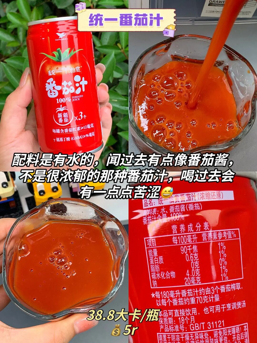 ✅统一番茄汁 38.8大卡/瓶 💰5r 🌟🌟🌟