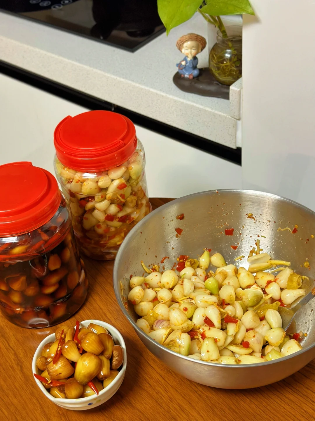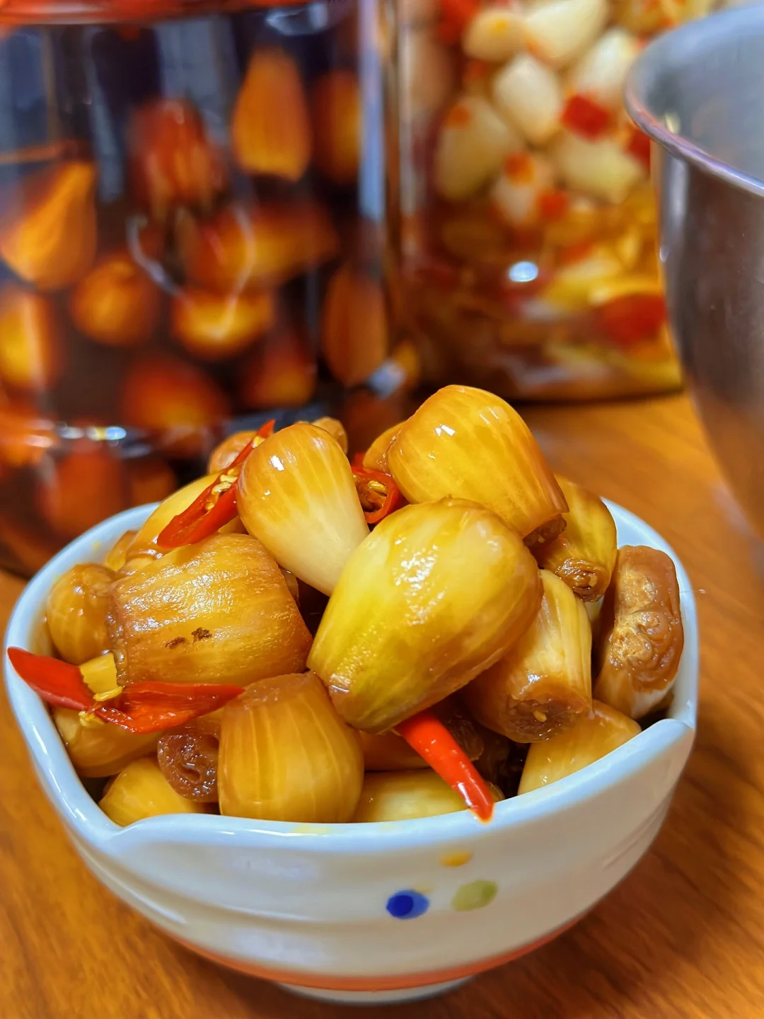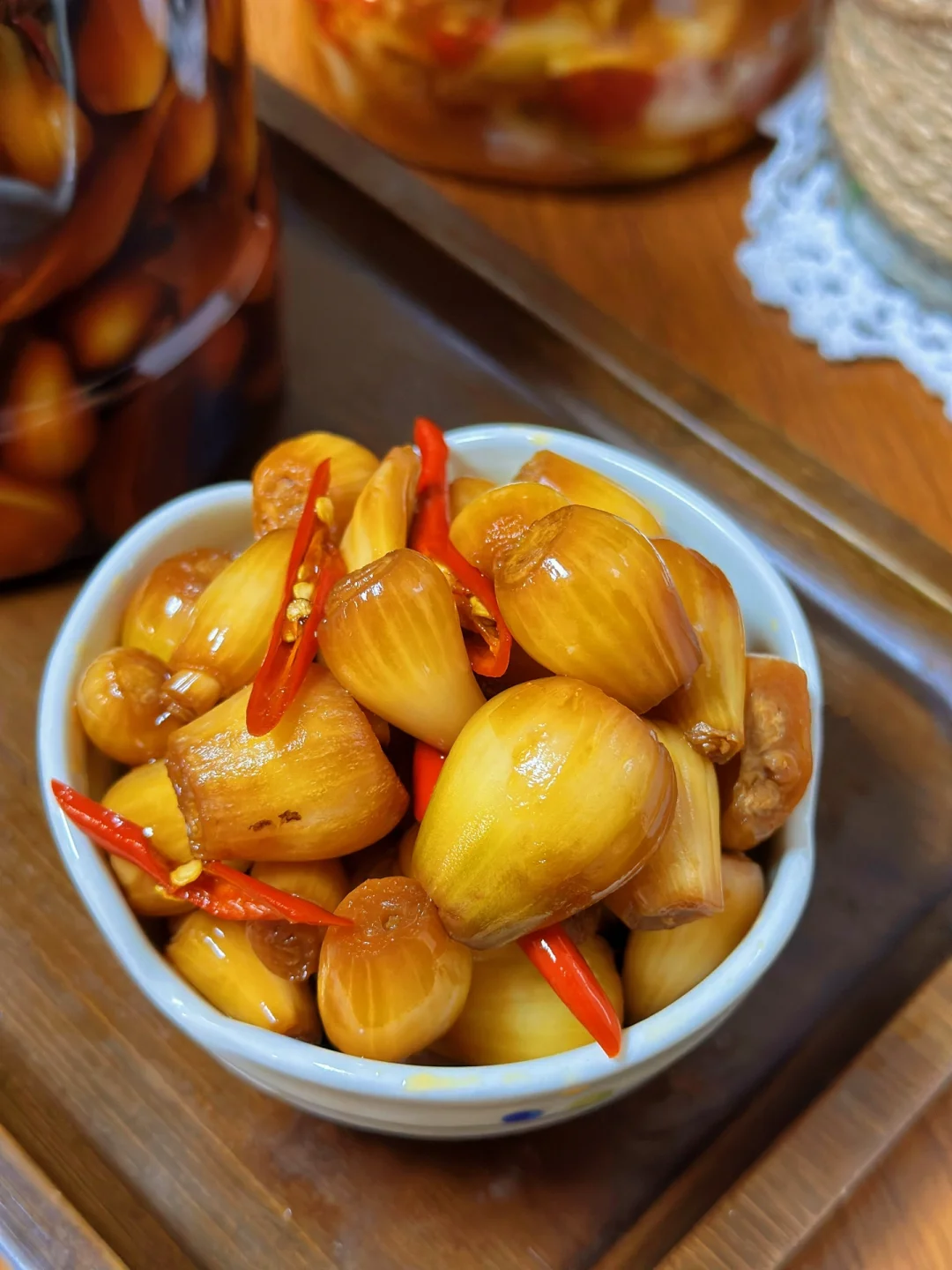 这个好像很多人都不知道,也不吃,但是喜欢的人都挺喜欢的,以前在老家的时候我和妈妈都很喜欢,只不过做法很简单,加一点点豆瓣酱生抽啥的,随便凉拌一下过一会儿就可以吃了,这次我把它泡了一下,结果是完全不一样的口感,酸辣开胃还挺脆超级开胃 1. 这个是在网上买的,好像很多菜市场都有你们可以自己去看一下 2. 我觉得清洗荞头真的是一件非常挑战的事情,用剪刀把根部和上面都剪掉,然后再把外面那一层剥掉到,后面我只能戴着眼镜弄流眼泪不止啊 3. 全部清洗之后放在阳台我们给它彻底的晒干水分 4. 我们找一个稍微大一点的无油无水的干净的容器,加入一半的凉白开再加入适量的生抽蚝油,米醋,糖,盐 这个没有具体的比例每个人喜欢的口感不一样,最后搅拌一下尝一下缺啥放啥就可以,喜欢吃辣的放一些切好的小米辣碎进去 5. 真的是配稀饭绝绝子,酸辣脆爽啊