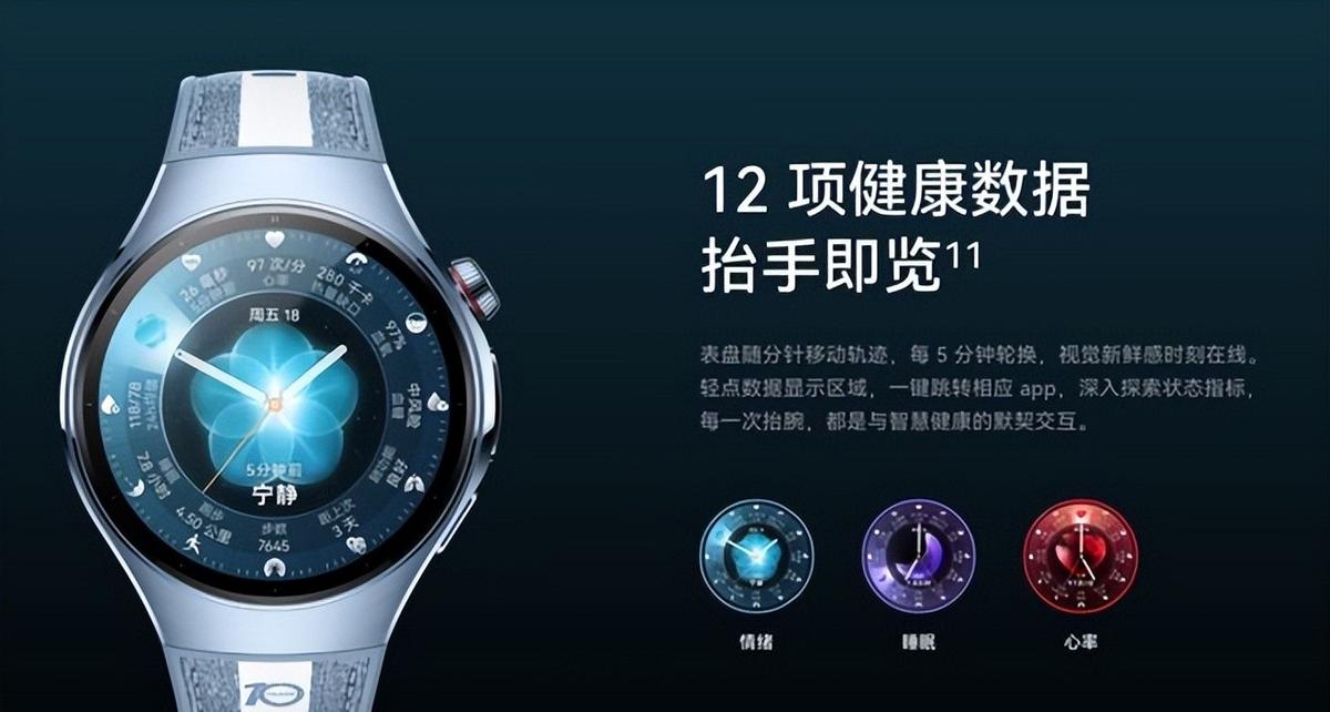例如华为WATCH十周年款,穹宇蓝和极地白交织而成的配色颜值极高,更何况其表冠和表带内侧还镌刻了“10YEARS”专属字样,在辨识度这块自然是没话说。更为有特色的还是华为WATCH十周年款的表盘,十二大核心健康指标都能一眼尽入眼底,真正实现了“一表全面感知,一眼知悉健康”。而华为WATCH FIT 4系列则被称之为业界最强智能方表,其中华为WATCH FIT 4 Pro的机身厚度更是仅为9.3mm,薄如蝉翼莫过于此。