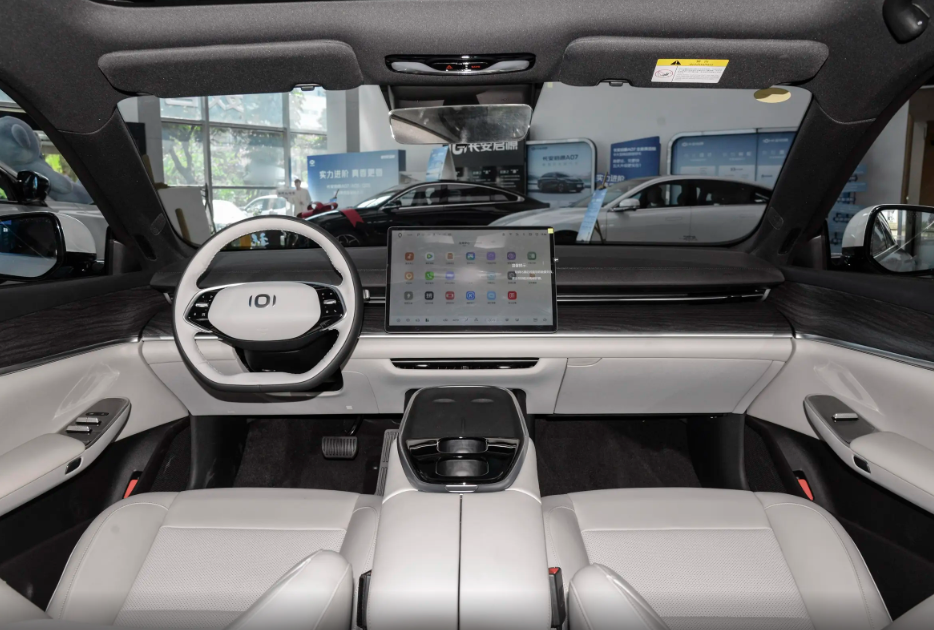 来到车内,同样也可以发现,长安启源A07纯电典藏版的车内设计和布局整体来说还是比较在线,也是当下新能源车主流的车内设计。长安启源A07纯电典藏版并没有仪表盘的设计,主要的行车信息是通过中控屏来查看的,该车也没有HUD抬头显示,这一点也确实不太应该,当然内饰的质感和氛围还是比较在线。
