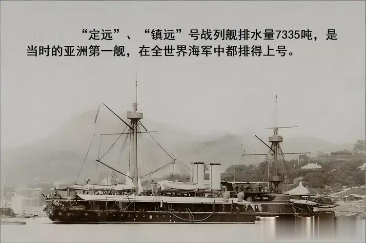 舰队核心主力“定远”、“镇远”两艘铁甲舰,由德国伏尔铿船厂建造,舰长94.5米,宽18米,标准排水量7335吨,远超当时日本联合舰队最大舰“松岛”号的4278吨。