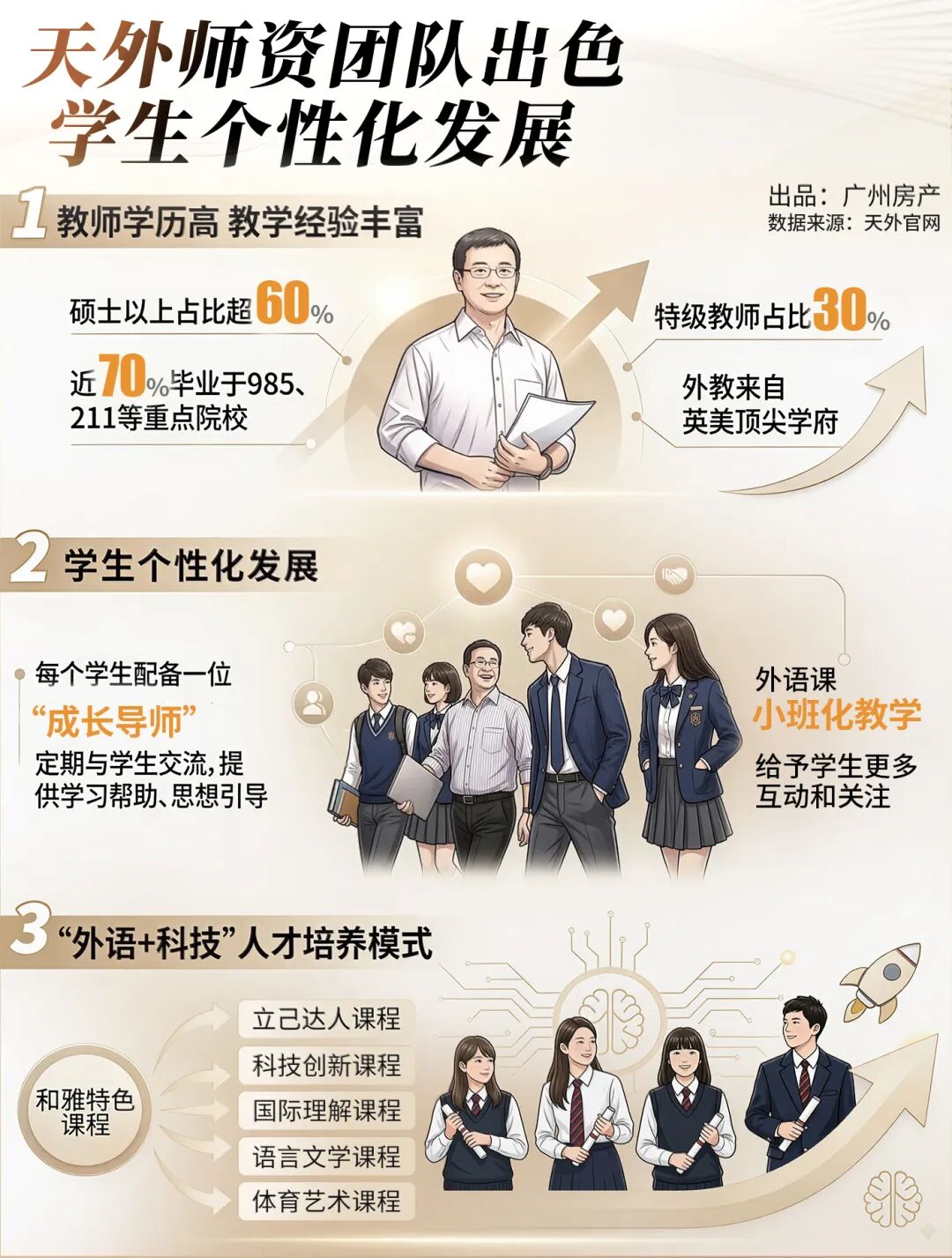 天外,作为天河创办的招牌名校,正好能很大程度缓解家长的择校焦虑。