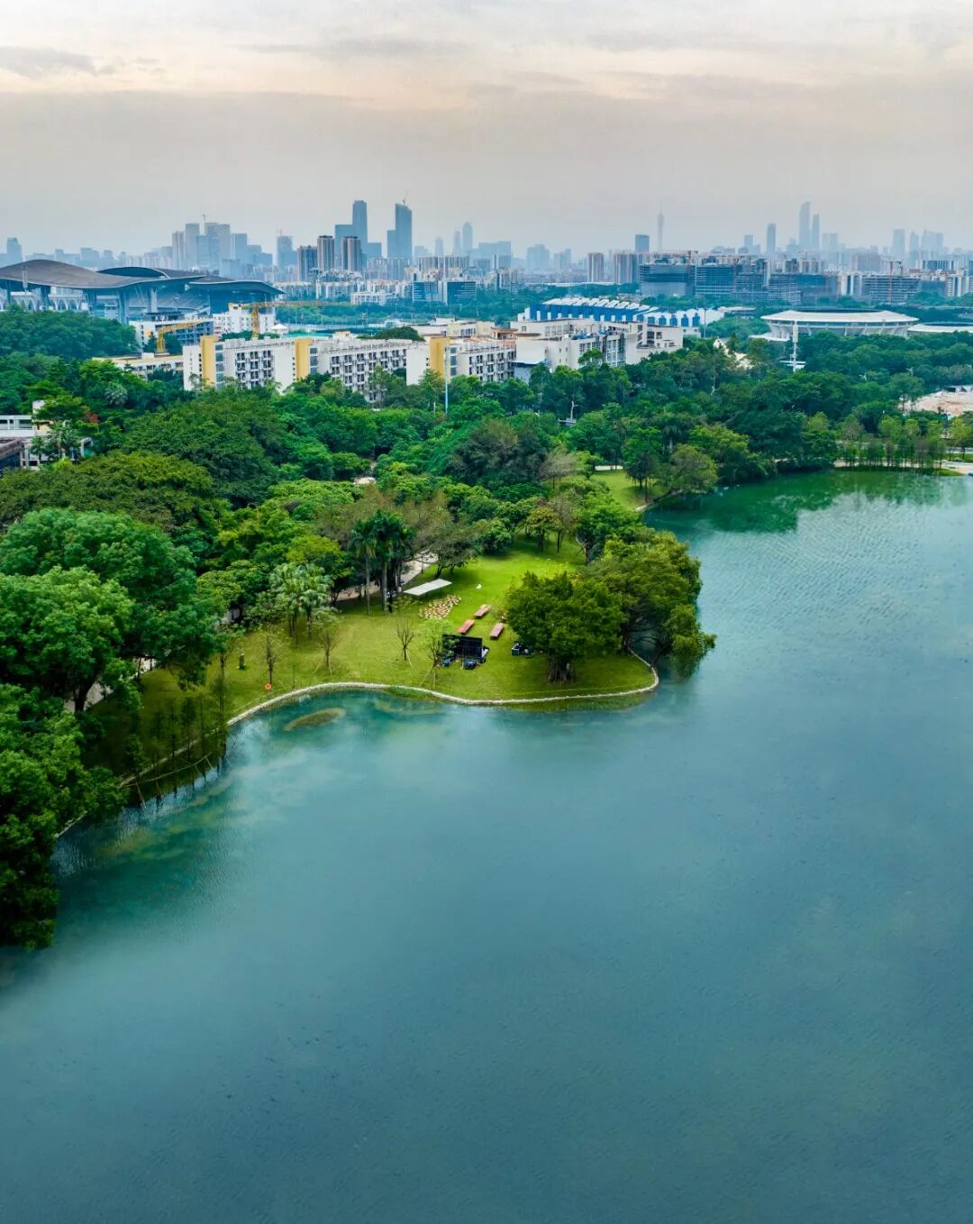 清晨,可在湖边晨跑,开启元气满满的一天;黄昏,与家人湖边漫步,看夕阳给城市镶上一道金边。