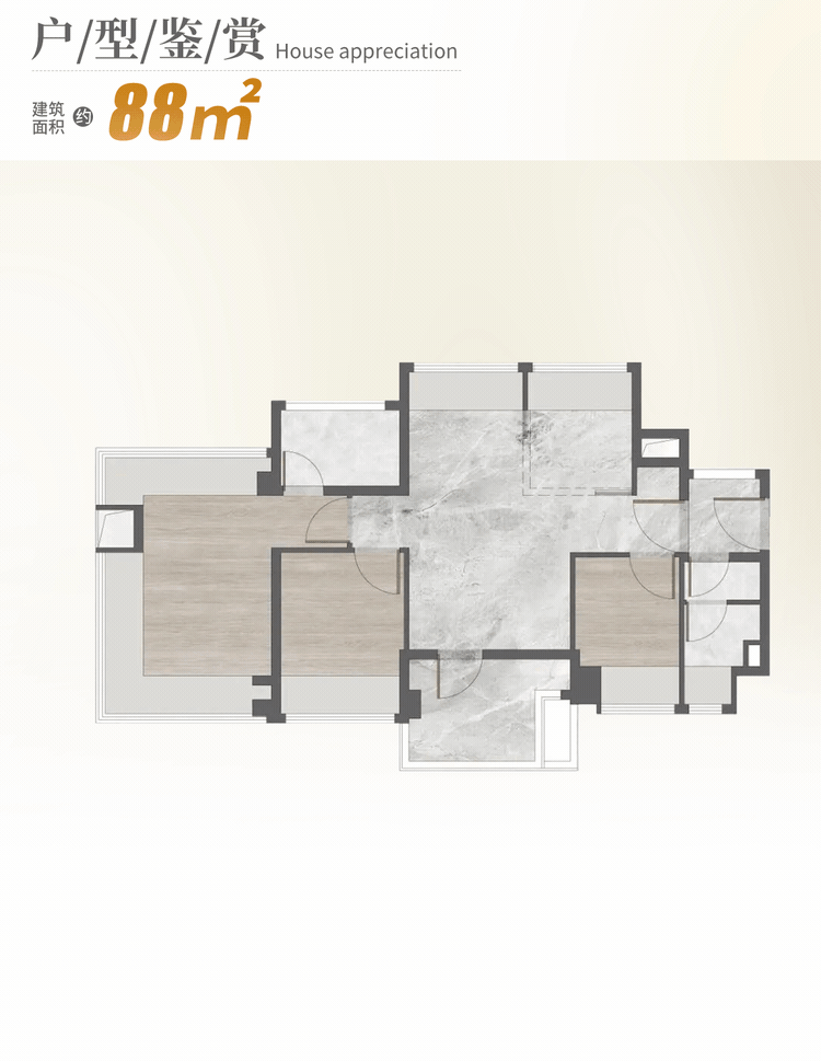 建面约76㎡户型,做到三房两卫,四开间朝南,是天河的稀缺小户型。