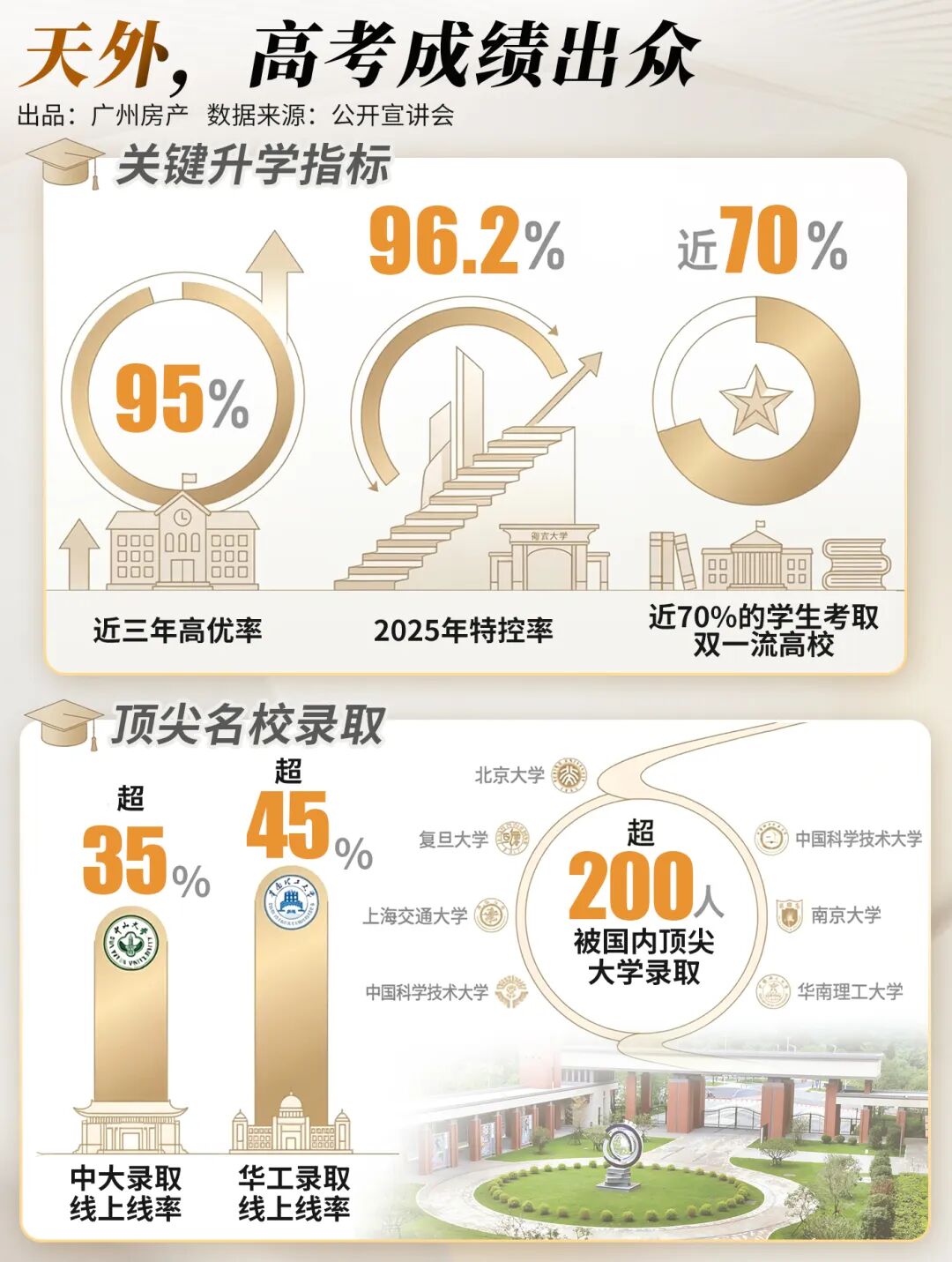 看中考,天外连续10年领跑天河,其中有3年,拿下广州市第一,风头盖过神学院。