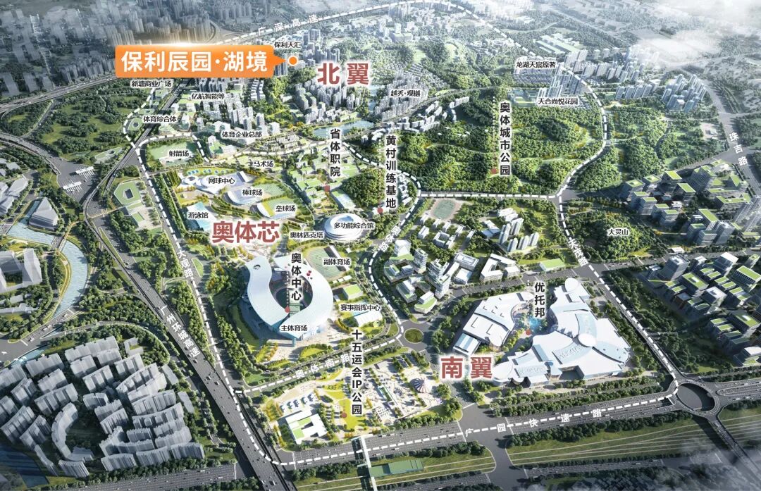 处在北翼组团的保利辰园·湖境,不仅坐拥城市发展红利,又与演艺中心保持恰当距离,既不远离繁华,又能私藏一份静谧。