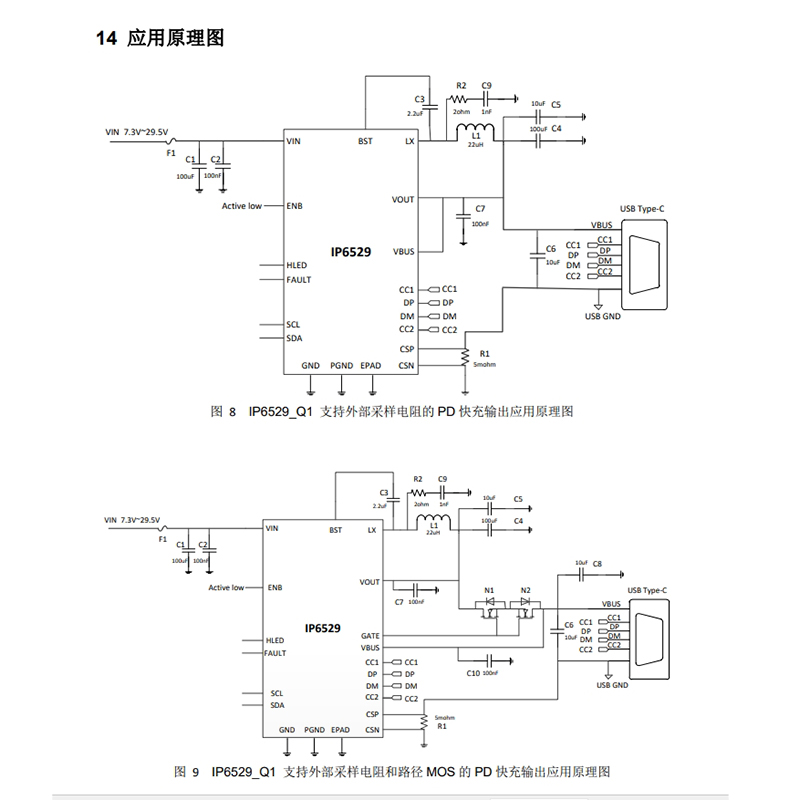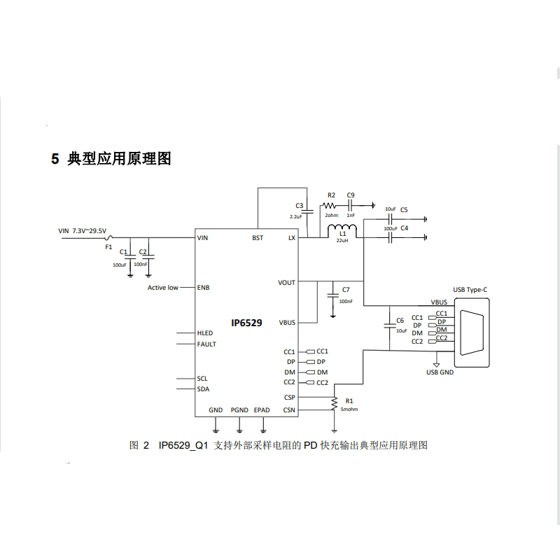 英集芯IP6529_Q1是一款适用于车载USB Type-C PD充电器方案的车规级DC-DC降压芯片,符合AEC-Q100 Grade 2标准,工作温度范围为-40℃至+105℃,可在极端温度环境下稳定工作。集成PD2.0/3.1、QC2.0/3.0/3+及Apple协议等所有主流快充协议。提供最大45W的输出功率。输入电压范围7.3V~29.5V,输出电压3.0V~21V。采用同步开关降压架构,内置功率MOS管,减少外部元件数量,简化电路设计,降低BOM成本。采用QFN24封装,体积小巧,便于集成到车载充电器中,节省PCB空间。