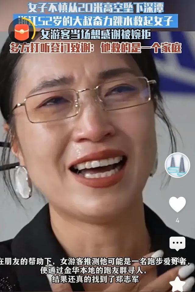 孙女士在获救后,想起当初从20米高的地方坠下深潭,她眼睁睁看着孩子在拼命呼喊。