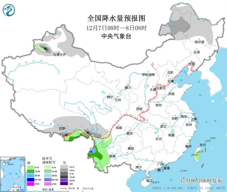 到了7号,新疆西北部和西藏东部、川西高原迎来了小雪或雨夹雪;而在云南西北部,小雨轻轻飘落。