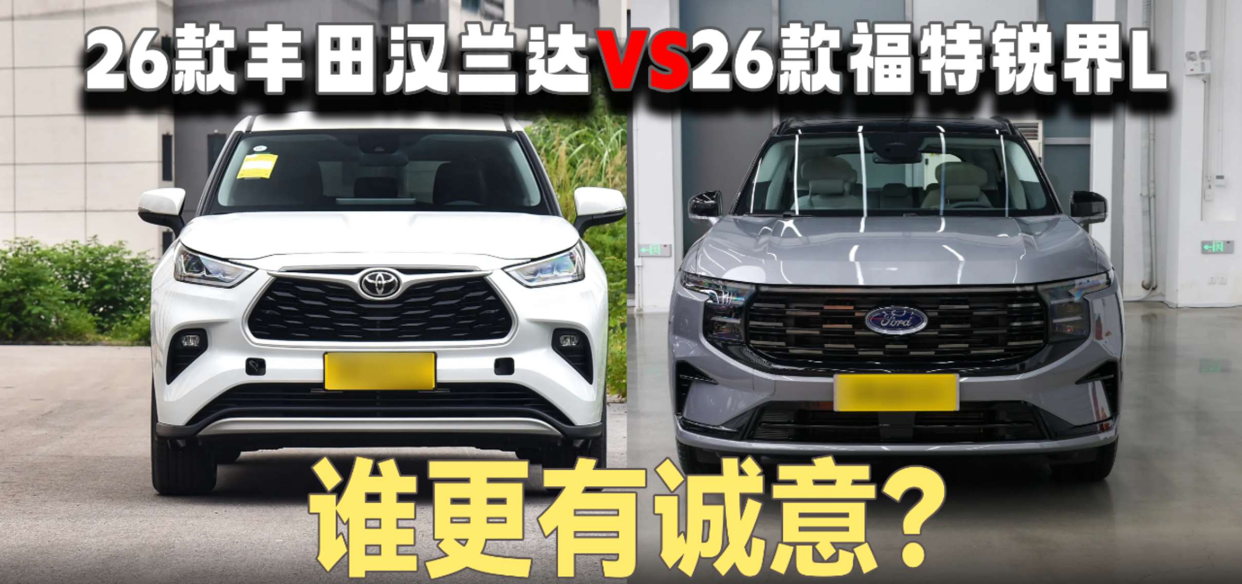 合资车想要卖得好该怎么做?其实简单总结就俩字,听劝,听市场的劝,也听消费者的劝。而市场上目前最热的是什么车?三排座6座或者7座的家用大尺寸SUV。那么今天咱们把视角放在合资阵营里面,刚刚上市了两款新车,分别是9月26日上市的2026款福特锐界L,以及曾经的标杆,丰田2026款汉兰达,合资车的对撞又能燃起怎么样的火花呢?