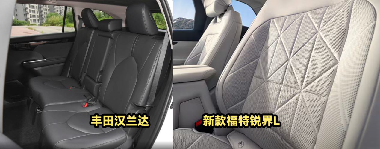 先来说汉兰达,作为新款车型,它的变化其实不大,外观没有变化,只是新增车身配色,取消了顶配车型。最大的变化就是车机方面,尤其是这个15.6英寸的屏幕,所以算是非常常见的年度小改款。而新款福特锐界L的变化就要多了不少,推出了2.0T EcoBoost®E混动四驱七座旗舰型,一步到位升级了半苯胺全粒面豪华真皮座椅,从中配车型开始就配备方向盘加热和第2排座椅加热。而且混动旗舰车型新增了HUD,豪华型至尊型和旗舰型新增540度透明座舱陡坡自动开启功能,福特家的Co Pilot360智行驾驶辅助系统也开始全系标配,都拥有L2级智能驾驶辅助,可以说它的升级面相比于重点在屏幕变化的汉兰达要明显很多,接下来咱们就具体看看。