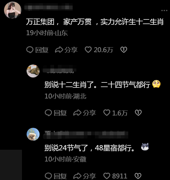 更令人惊讶的是,这位年轻的女网红不打算只要这九个宝宝,而是想凑齐12生肖,生十个生肖不同的宝宝。网友们称,她想生12个孩子的愿望在圈里也不是什么秘密了。24节气,48星宿都行。