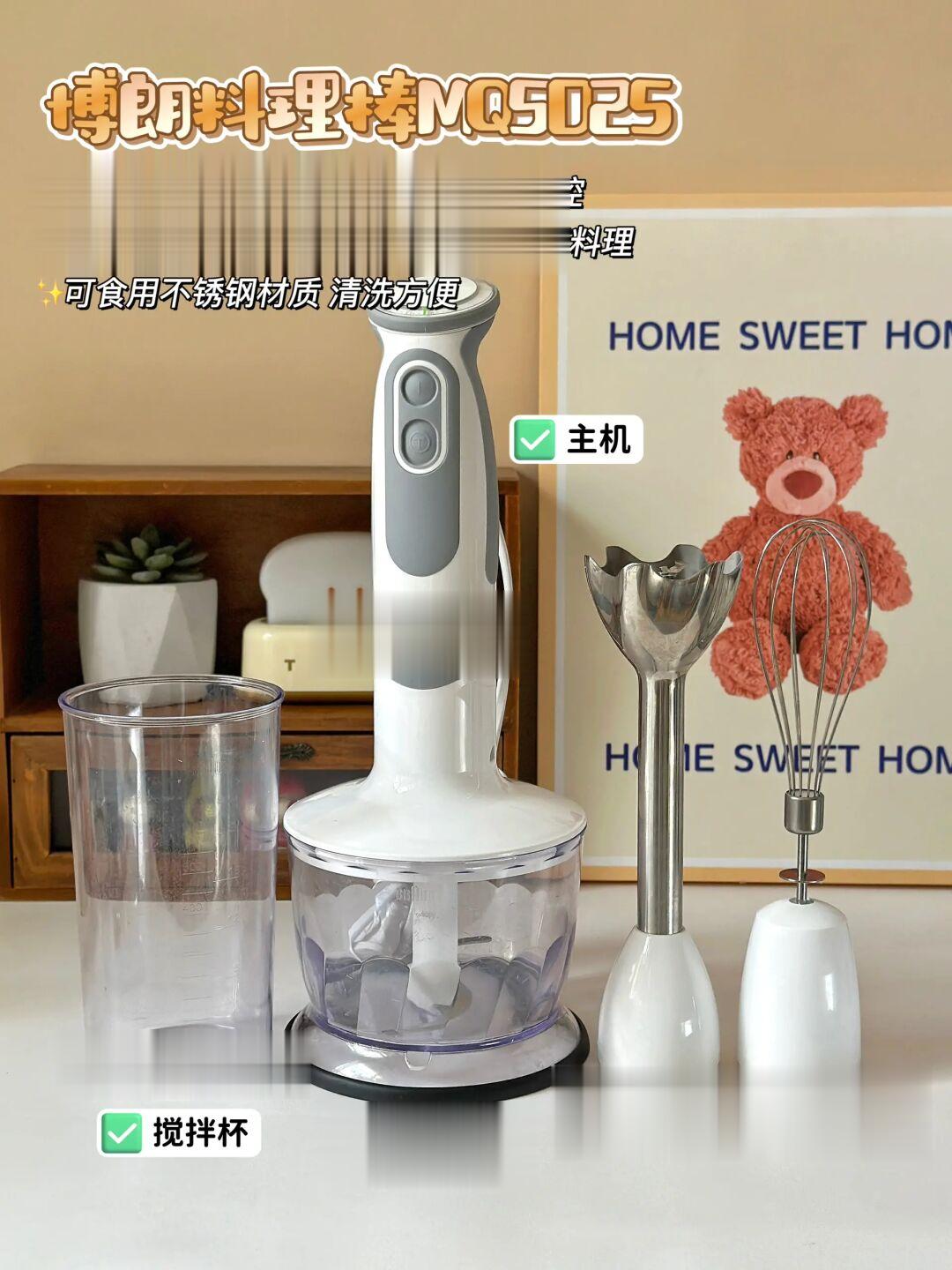 ➡️平常做辅食经常会用到博朗MQ5025料理棒,德国品质,食品级不锈钢材质,用起来更安心😎它有21档精准调速,可以根据宝宝年龄,将食物搅打成不同细腻程度🥕而且它不挑量,即便是辅食初期,也可以打少量辅食,很贴心👏🏻机身自带防飞溅罩,不用担心搅打时溅出来弄脏桌面~它的配件也很丰富,平时做果泥、奶昔、肉饼、丸子、蛋糕等都可以🍞水一冲就干净,收纳也不占空间,实用性和利用率都很高~