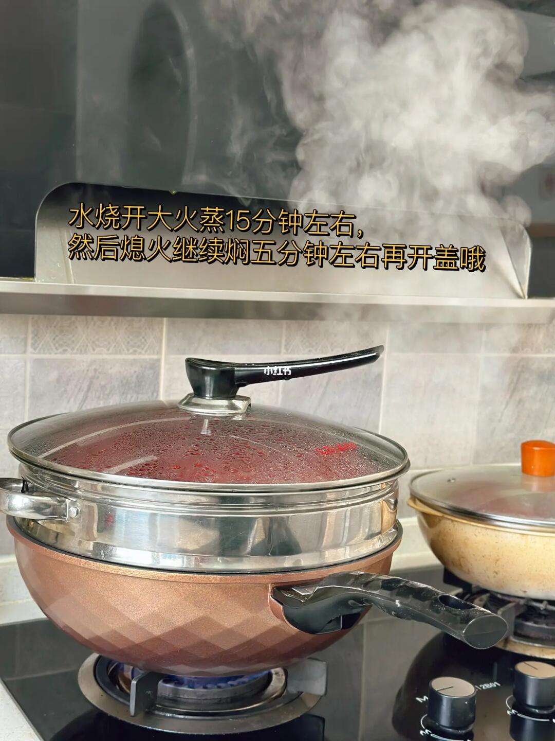 11. 水烧开大火蒸15分钟左右,然后熄火继续焖五分钟左右再开盖哦