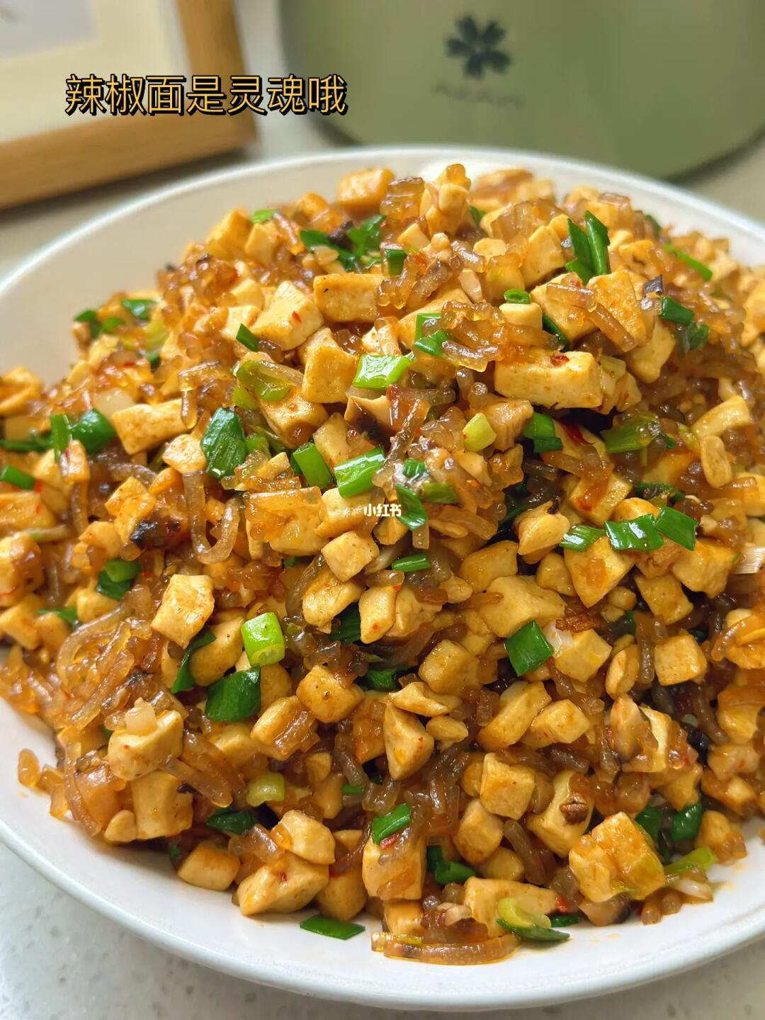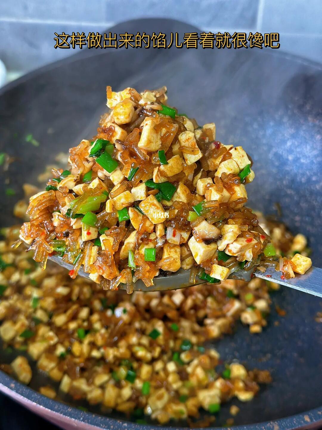 7. 再把粉条和豆腐放进去翻炒加入一丢丢生抽一勺蚝油放水盐鸡粉喜欢吃辣的一定要放一点辣椒面这是灵魂出锅前放一点葱花段