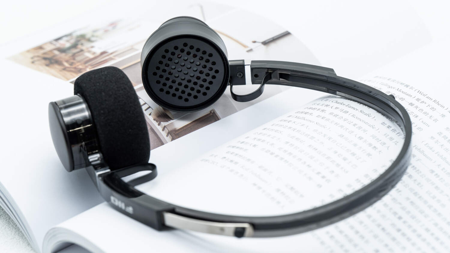 EH11的外观设计大体上沿用了80年代复古小头戴的外形框架,甚至还原了桶形单元外壳+外包式耳棉的压耳式佩戴结构,EH11的耳棉是可以轻松更换的,标配2对,此外还可以另购其他颜色的耳棉套装来进一步丰富颜值。耳机为塑料+金属+实木材质,单元外壳和头梁外层是复合材料,可调节伸缩骨架为金属,而单元背部面板是一个薄薄的圆形小木碗——这个木碗是可以拧动的,左耳顺时针/逆时针旋转可实现切歌功能而右耳则为调节音量,这是个相当棒的设计,配合耳机本身蓝牙连接的特性,简单实用且直观,轻松实现主要功能盲操作。耳机外壳上有一个很小的物理按键,身兼电源开关/播放暂停功能,由于其唯一性也是可以盲操的。因此在正常播放音乐的情况下,我最常用的切歌、调音量和播放/暂停功能都能通过简单的物理动作实现。EH11的白透和黑透版本,单元外壳和头梁大部为透明的,可以看到内部结构,在强光下有一种独特的质感。这种外观风格带有“复古未来主义”的味道,复古了又没完全复古,保留了适度的想象空间。
