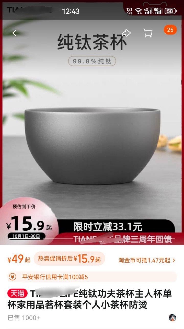 那么一点点大的纯钛茶杯要15块?好过去抢。