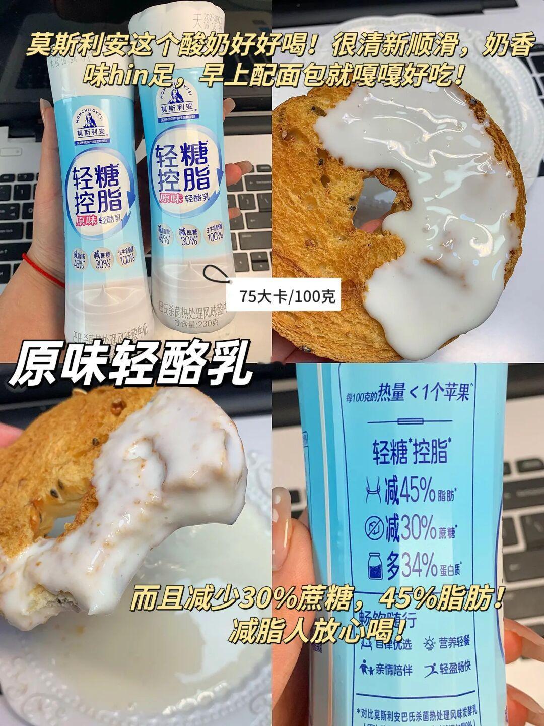 作业!!!都是我回购了好多次的,减脂人来抄作业!热量都不高,控糖人必备! 1⃣️轻糖控脂原味轻酪乳 2⃣️轻糖控脂红西柚轻酪乳 3⃣️杂粮贝果/碱水 4⃣️鲜椒牛肉酱 5⃣️时蔬鲜虾饼 6⃣️无添加坚果 7⃣️有机银耳 8⃣️老面小笼包 莫斯利安家这个轻糖控脂的轻酪乳真的很好喝,很清新顺滑,而且真的减少30%蔗糖,真的减少45%脂肪,真的超适合减脂人,不玩假的!!