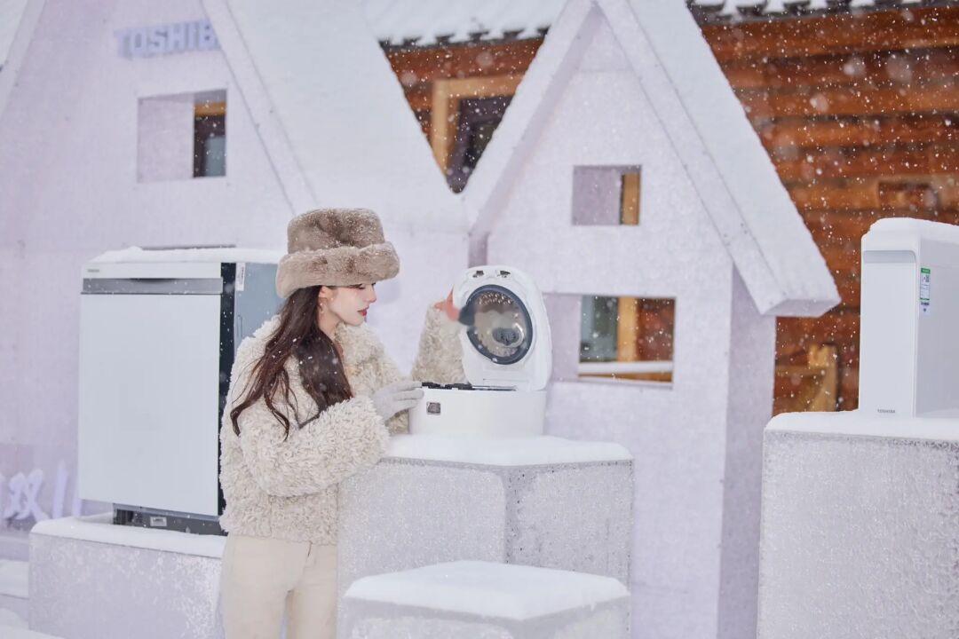 在禾木山庄偶遇了东芝的展览,皑皑的白雪映衬下,东芝像一辆开往雪国的列车,好似梦境一般,给童话般的喀纳斯带来先进而现代的生产力!我们住酒店淋了雪弄脏衣服,东芝的洗衣机+烘干机组合不一会就还原蓬松温暖馨香的新衣!东芝白珍珠四开门的大冰箱里满载新疆特色美食小吃,奶酪、酸奶片是我的最爱!!啤酒和冷冻的烤串也是年轻人必备!还有我非常感兴趣的洗碗机,暖风机等等!歌与生活在这里体现的淋漓尽致!