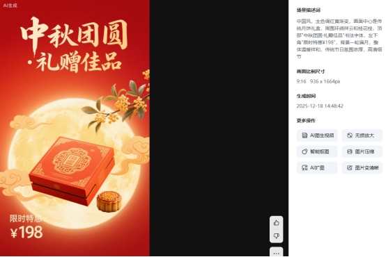 在使用易可图制作海报时,用户可以输入文字描述,让系统根据内容自动生成海报布局。AI 能够识别你的文案描述并为你生成对应的排版、背景与文案位置,从而快速生成视觉效果完整的海报图。这种自动化处理特别适合电商运营人员、店铺管理员或者营销推广人员使用,无需掌握复杂设计技巧。