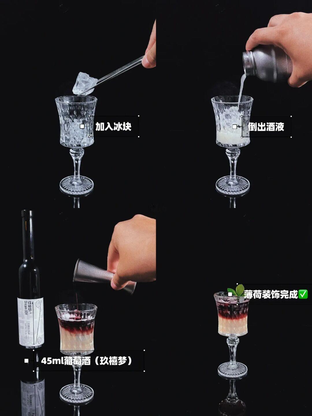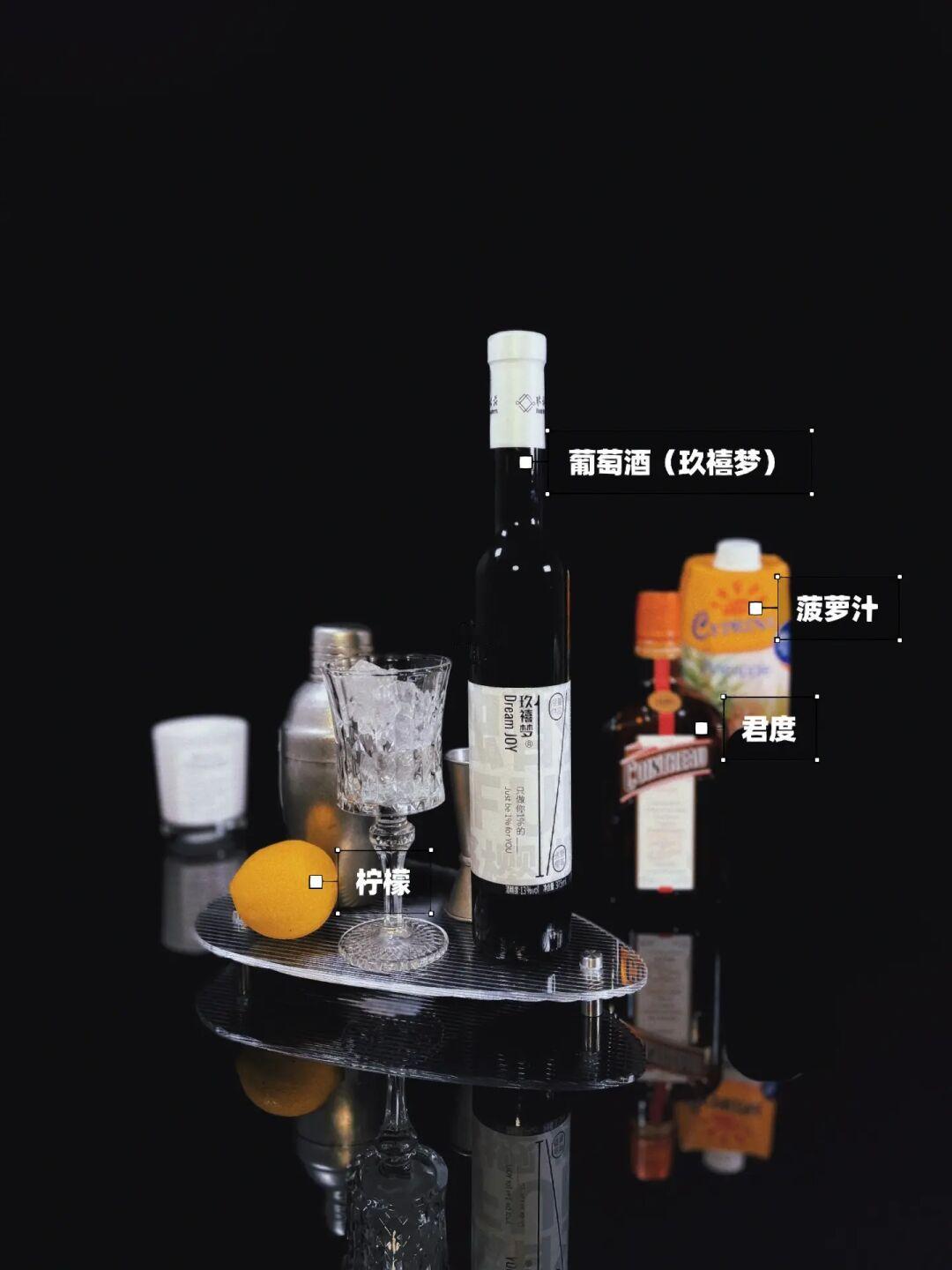 梦终究是梦,梦醒时分, 曲终人散,我们终究会遗忘彼此。 无非成全的事情,就让它随风而去吧。 - 配方Formula 葡萄酒----------------------45ml 菠萝汁----------------------60ml 君度-------------------------25ml 柠檬汁-----------------------半颗 薄荷--------------------------装饰 - 这款特调(梦醒时分)初感是葡萄酒的纯香,这款葡萄酒(玖禧梦)本身口感香甜,入口细腻圆润。不同于一般葡萄酒的酸涩感,还含有1%野樱莓(俗称不老莓),也很适合小姐姐纯饮品用。 继续慢慢下品,橙香-菠萝-柠檬香气尽显,层层递进,相得益彰,层次感丰富,原带酸涩感的入口感又带来一丝甜味,搭配的着实让我惊喜。梦醒时分,大家可以试试~~ -