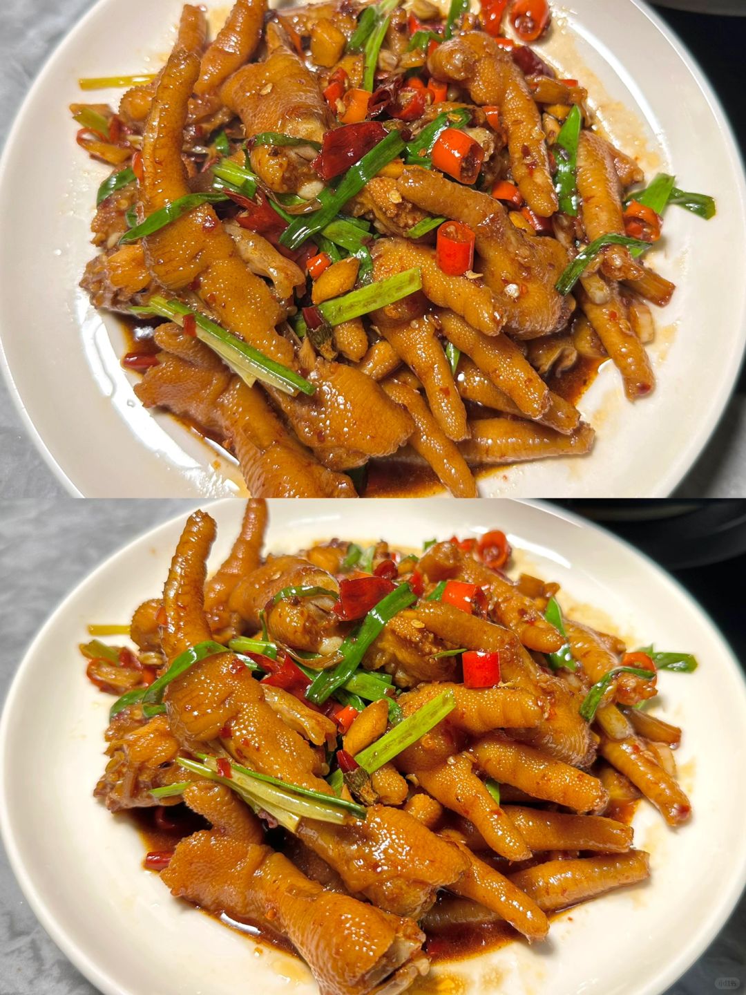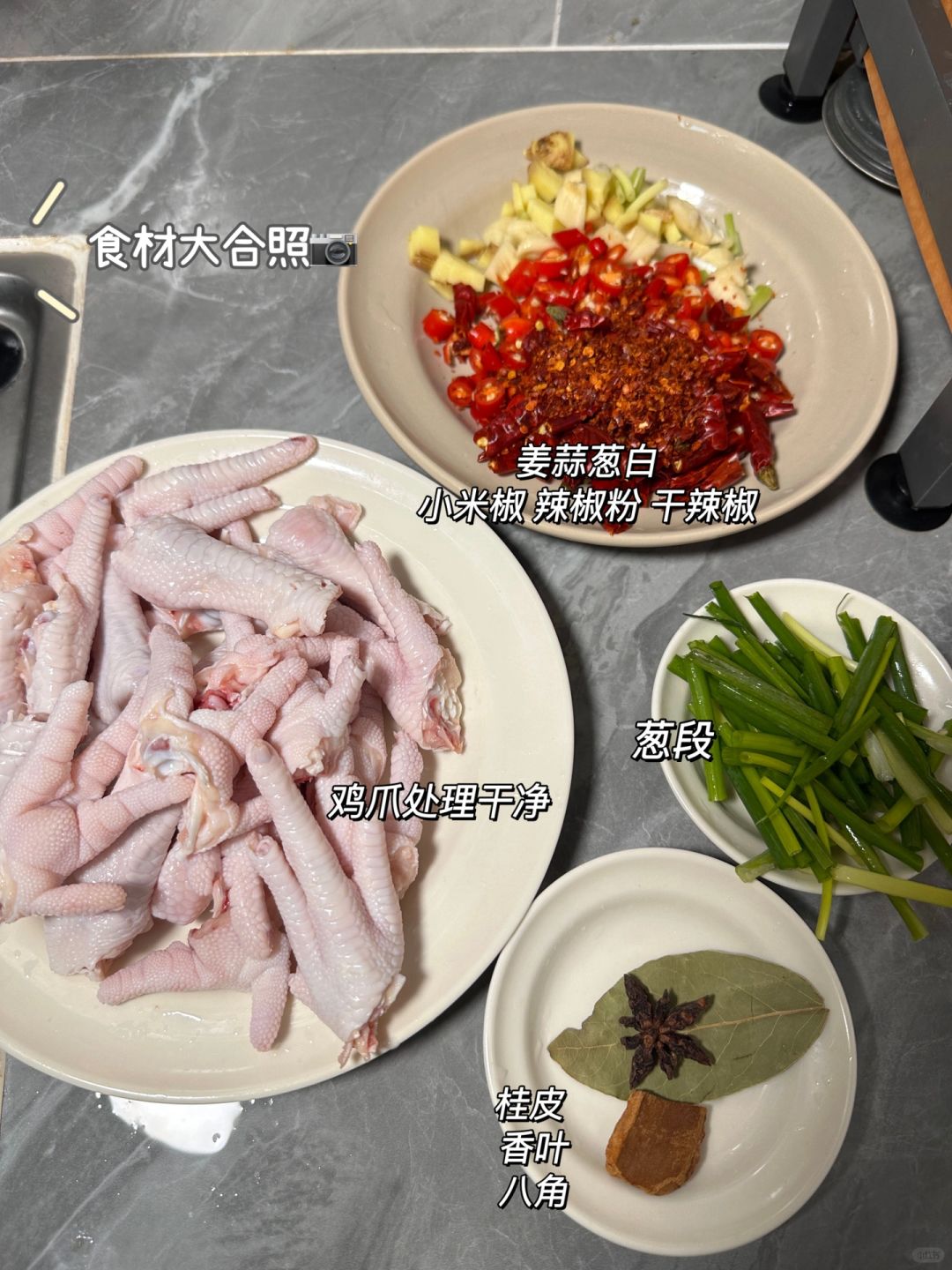 ✨食材:鸡爪 姜蒜粒 小米椒 干辣椒段 辣椒粉 葱段 香叶 桂皮 八角