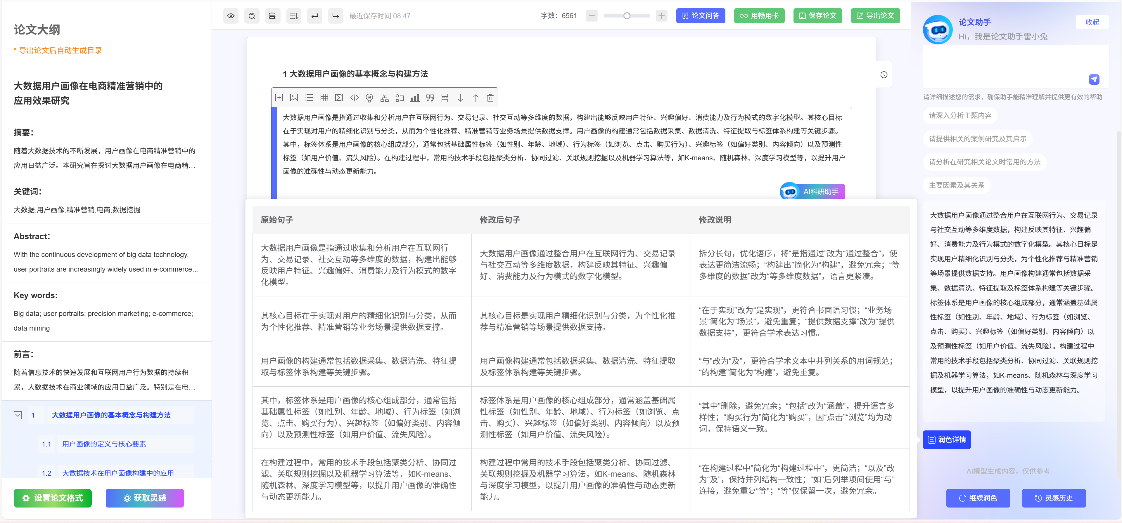 适配场景:中文学术论文正文润色、逻辑优化、研究背景补充,适合文科学生、中文期刊投稿者使用,可搭配雷小兔完成格式优化,提升写作效率。