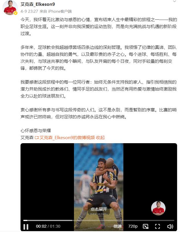 当成都太古里商圈霓虹初上时,35岁的艾克森在社交平台发出了一封手写信。泛黄信纸上钢笔字迹微微洇开,这位被中国球迷亲切唤作"小熊"的归化国脚,用十六年光阴谱写的足球故事就此画上休止符。从维多利亚贫民窟走出的少年,到身披五星红旗的"中国埃神",他的转身离去在春夜里掀起阵阵涟漪。