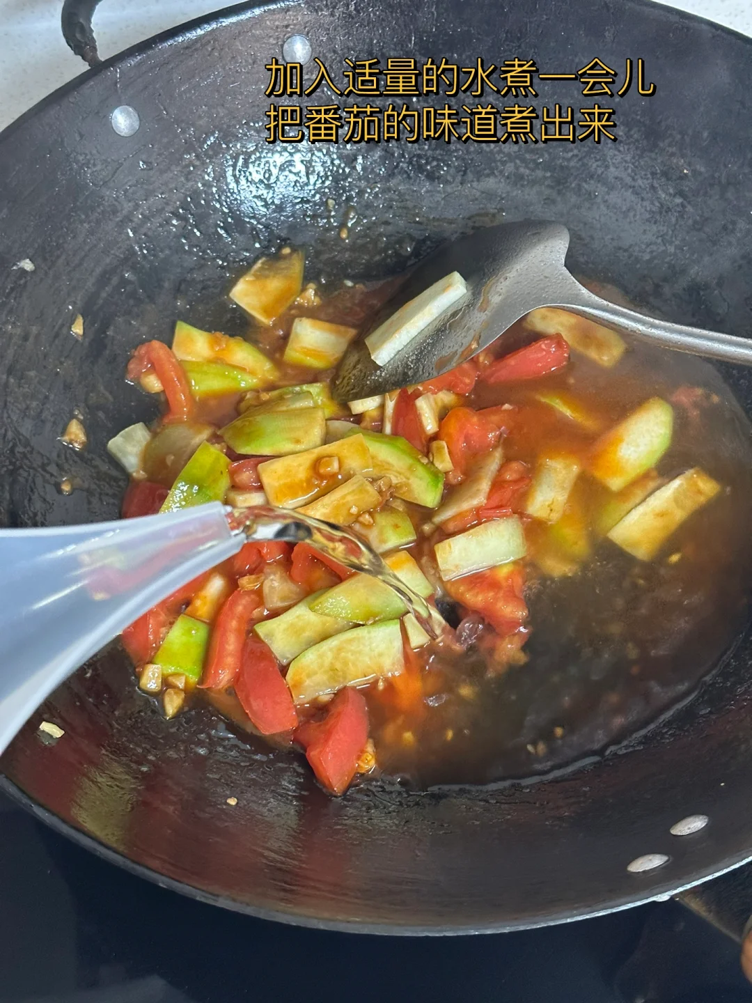 4. 加入适量的水煮一会儿把番茄的味道煮出来