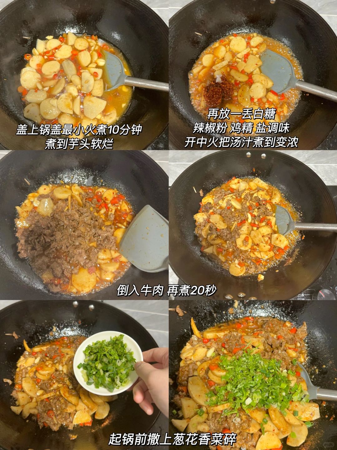 ✨食材:小芋艿(红芽芋)牛肉 姜蒜 小米椒 葱花香菜