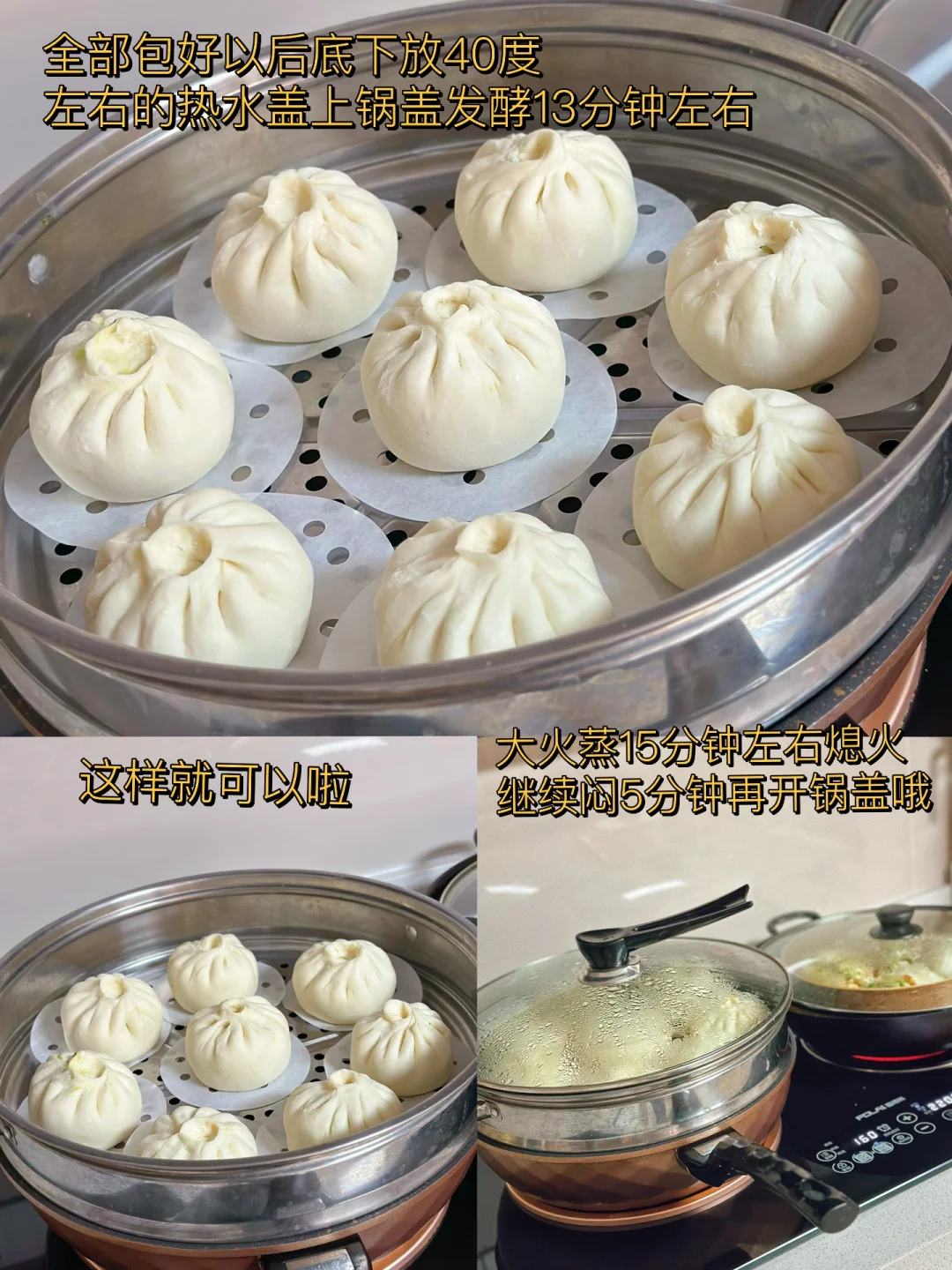 10. 全部包好以后底下放40度左右的热水盖上锅盖发酵13分钟左右