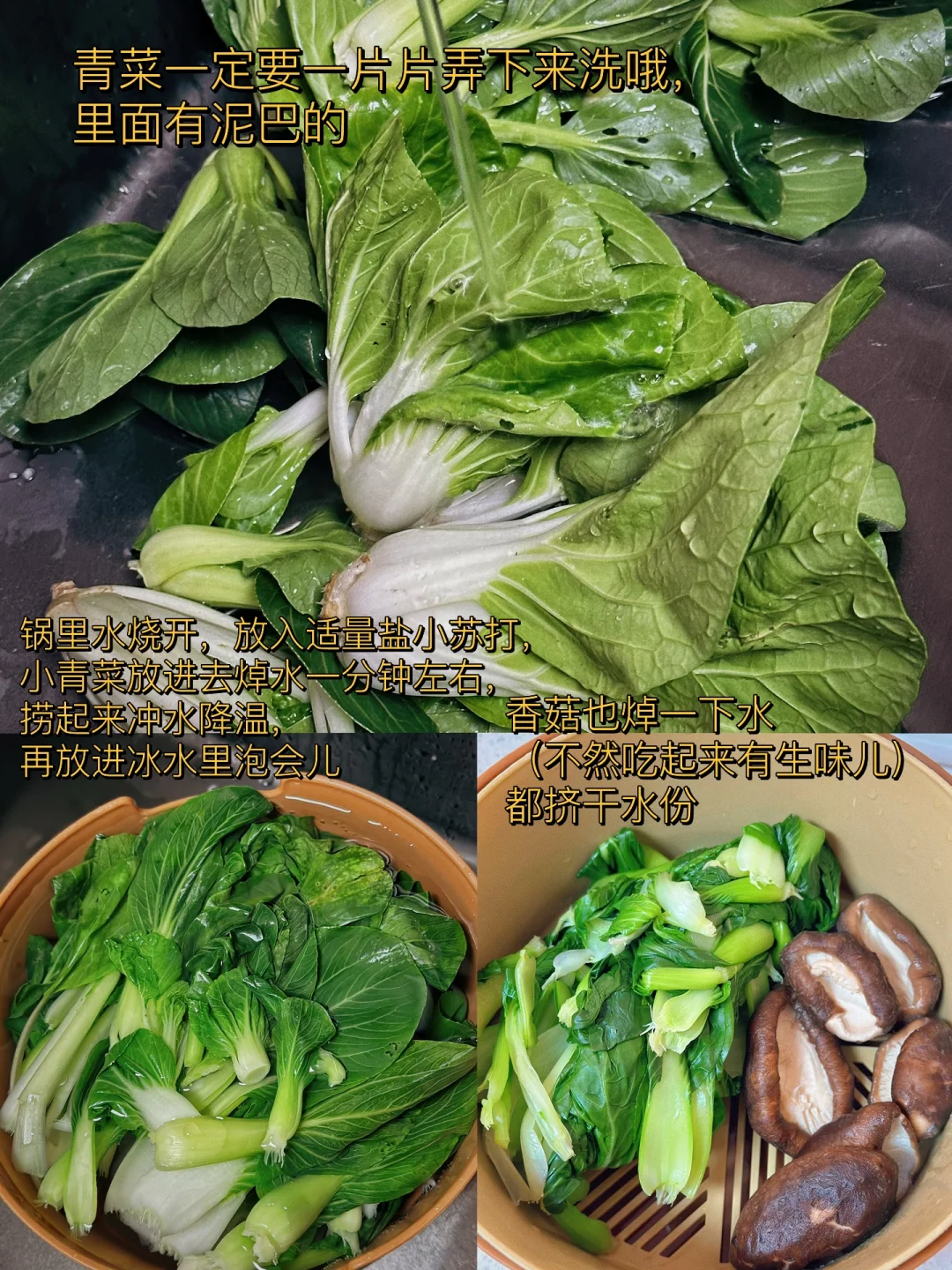 3. 香菇也焯一下水(不然吃起来有生味儿)都挤干水份