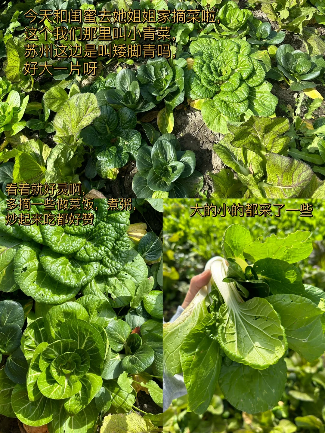 1. 今天和闺蜜去她姐姐家摘菜啦,这个我们那里叫小青菜,苏州这边是叫矮脚青吗,好大一片呀