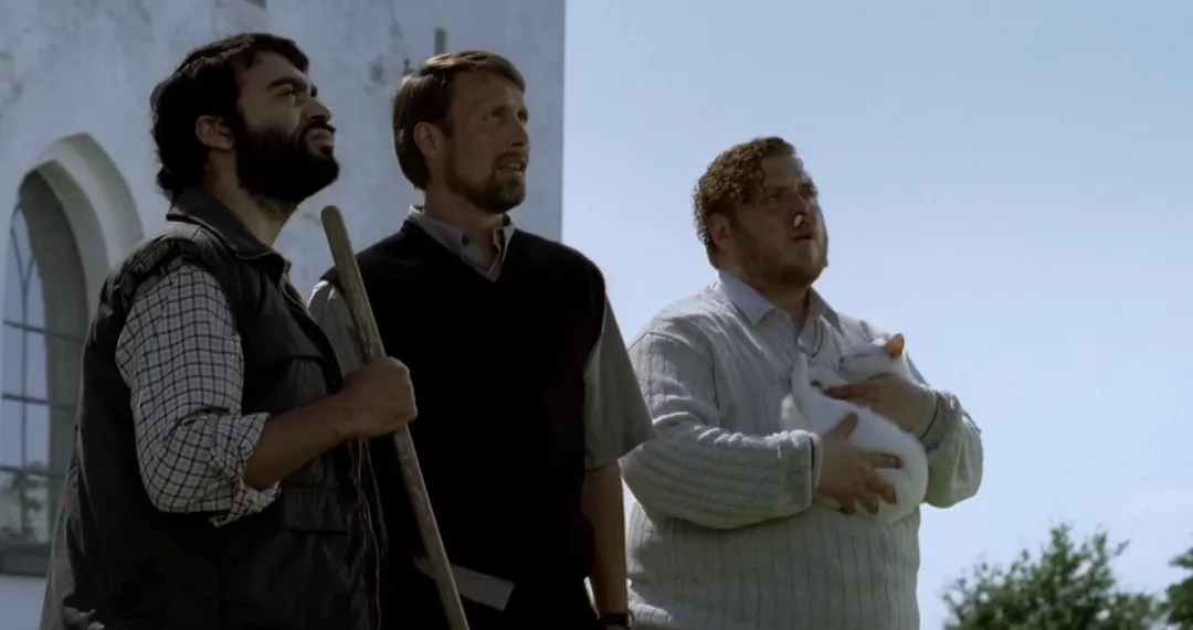 《亚当的苹果》初看是喜剧,实际上当观众们仔细回想之后,就会明白,本片不仅仅是喜剧,喜剧只是外衣,更多的时候,本片用喜剧的外壳来完成了宗教的某种洗礼。
