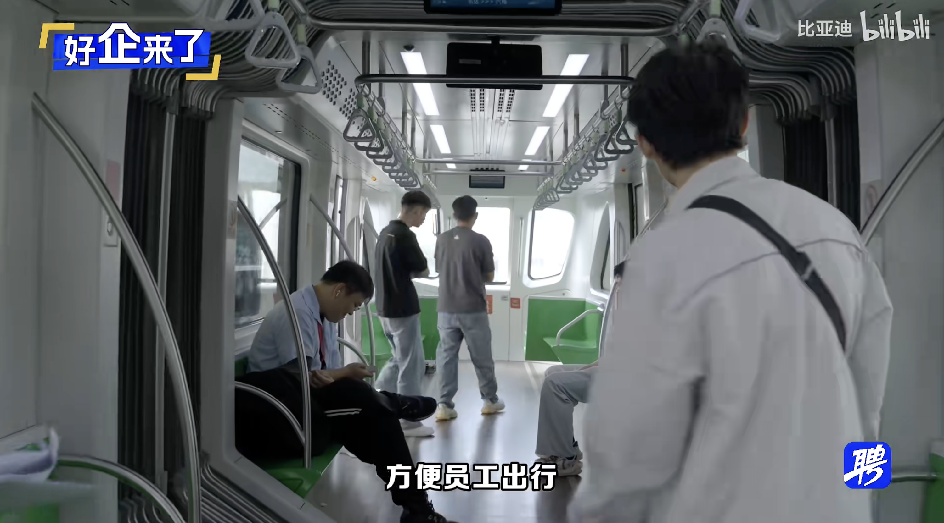 主要是比亚迪的员工福利是真的香,厂区有自己的交通工具「无人驾驶云巴」,通勤效率高又舒适。餐补话费补贴都有,买自己公司的车,每个月还有补贴,甚至充电也不要钱……即使是不想住员工宿舍,出去租房住还能有额外补贴。