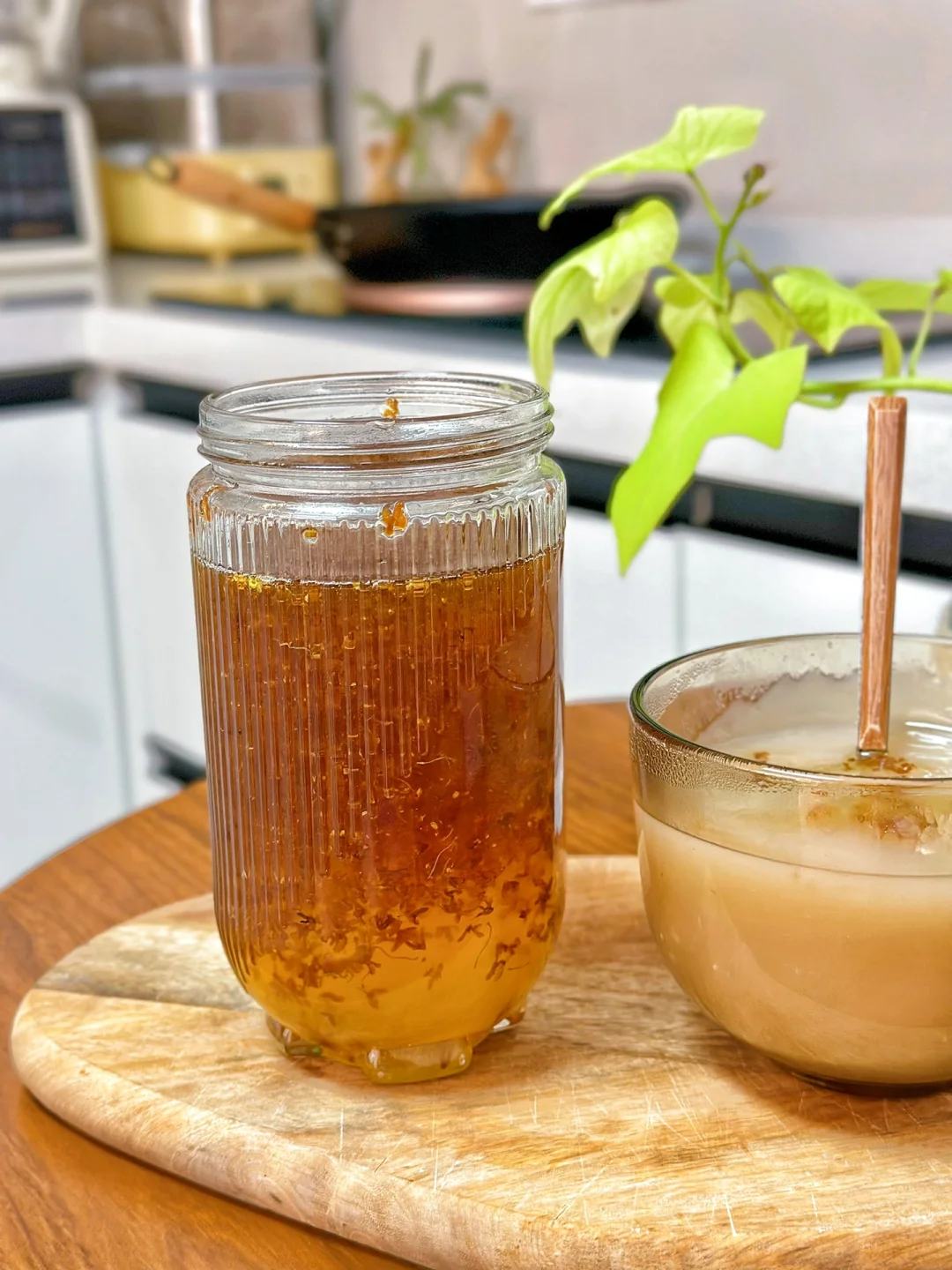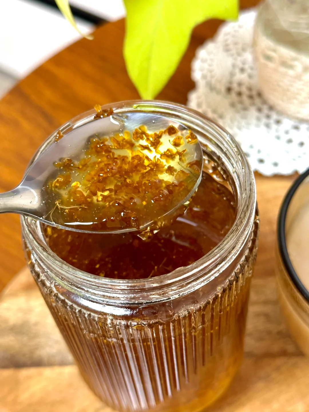 家里原本有一小罐桂花蜜做了都两年了放在冰箱,一直都忘记吃了