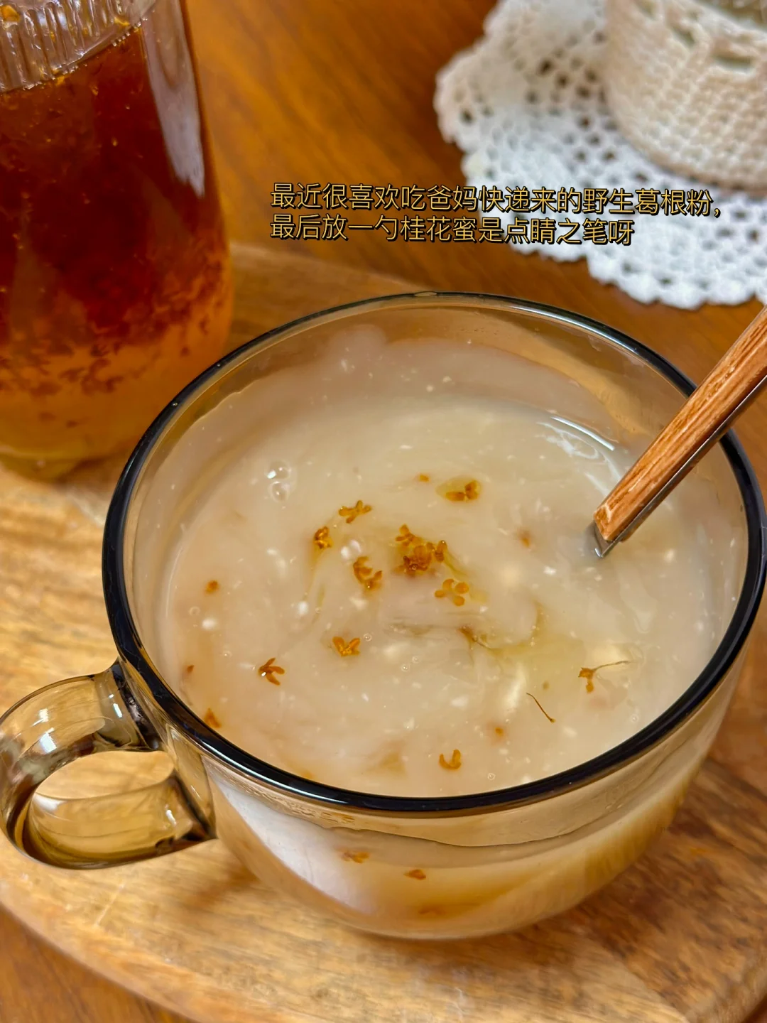 前几天感冒没有什么食欲,冲了两次觉得好好吃,刚开始没有放桂花蜜觉得有点淡,放了一勺桂花蜜之后也太好吃了吧,