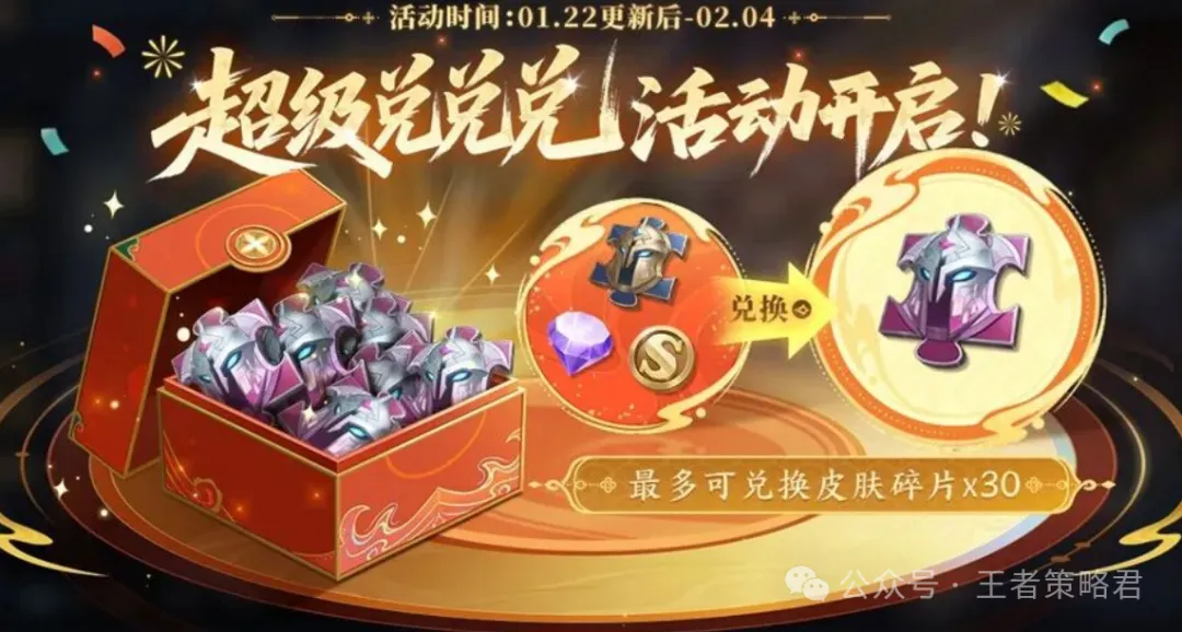 “ Hello,大家好,我是策略君,王者荣耀1月22日正式服更新直接放大招!从传说皮肤超值购到6元限定返场,再到金币钻石清库存换碎片,福利覆盖零氪、微氪、氪金全玩家,策略君这就把核心福利拆解到位,帮大家精准薅羊毛,不花冤枉钱!”