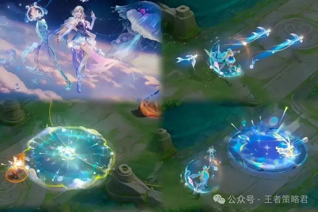 技能特效细节拉满:普攻发射海螺,强普召唤三只飞鱼,被动护盾破碎散落云朵海螺;大招召唤梦幻海域,鲸鱼幻影、水母竖琴齐亮相,碎片落地还能唤醒小灯塔水母,视觉效果直接拉满。关键是拥有王昭君即可领388点券优惠卡,首周折后仅962点券。