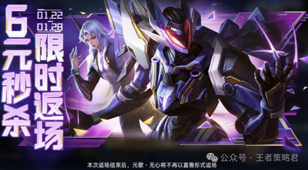 源梦系列爆款皮肤元歌「无心」迎来终极返场!1月22日-28日期间,仅需60 点券就能直接购买,这是最后一次直售机会,后续再也没有直接购买渠道,只能靠抽奖获取。作为6元皮中的口碑王,「无心」建模简约有质感,特效不拉胯,哪怕不是本命元歌,6元囤一款限定也血赚。