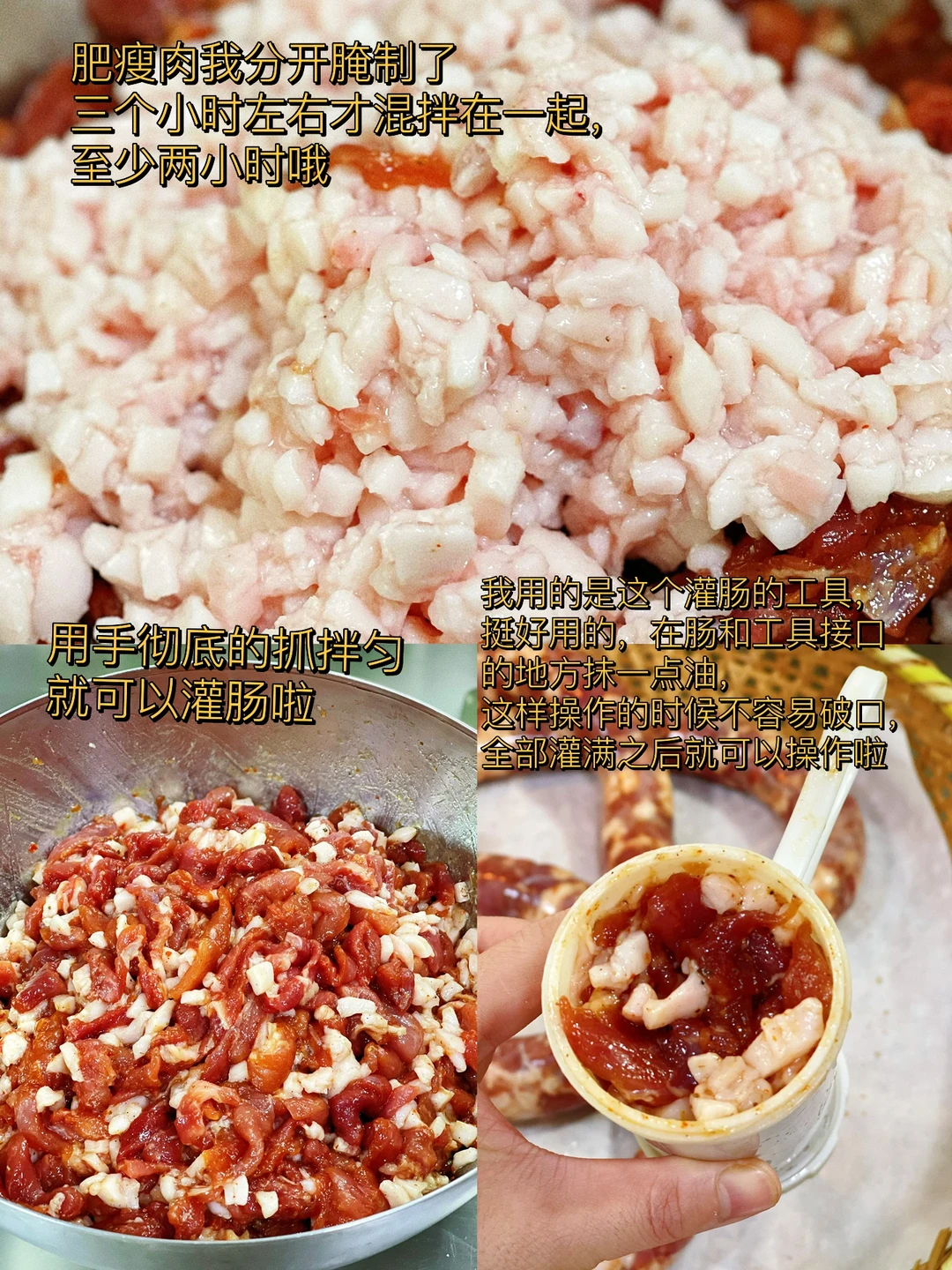 麻辣香肠一直是爸妈在老家做好熏好以后快递给我,偶尔也想吃广式腊肠老家都是重口所以不会,就只能自己动手啦 ,顺便分享详细的方子给你们绝对好吃