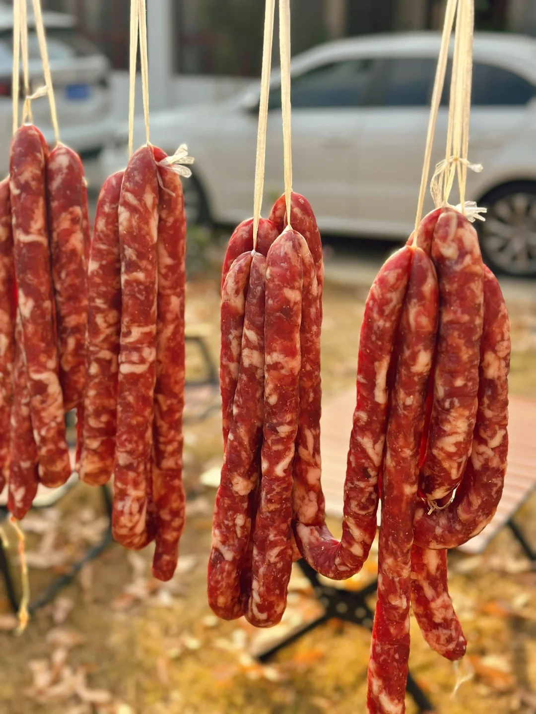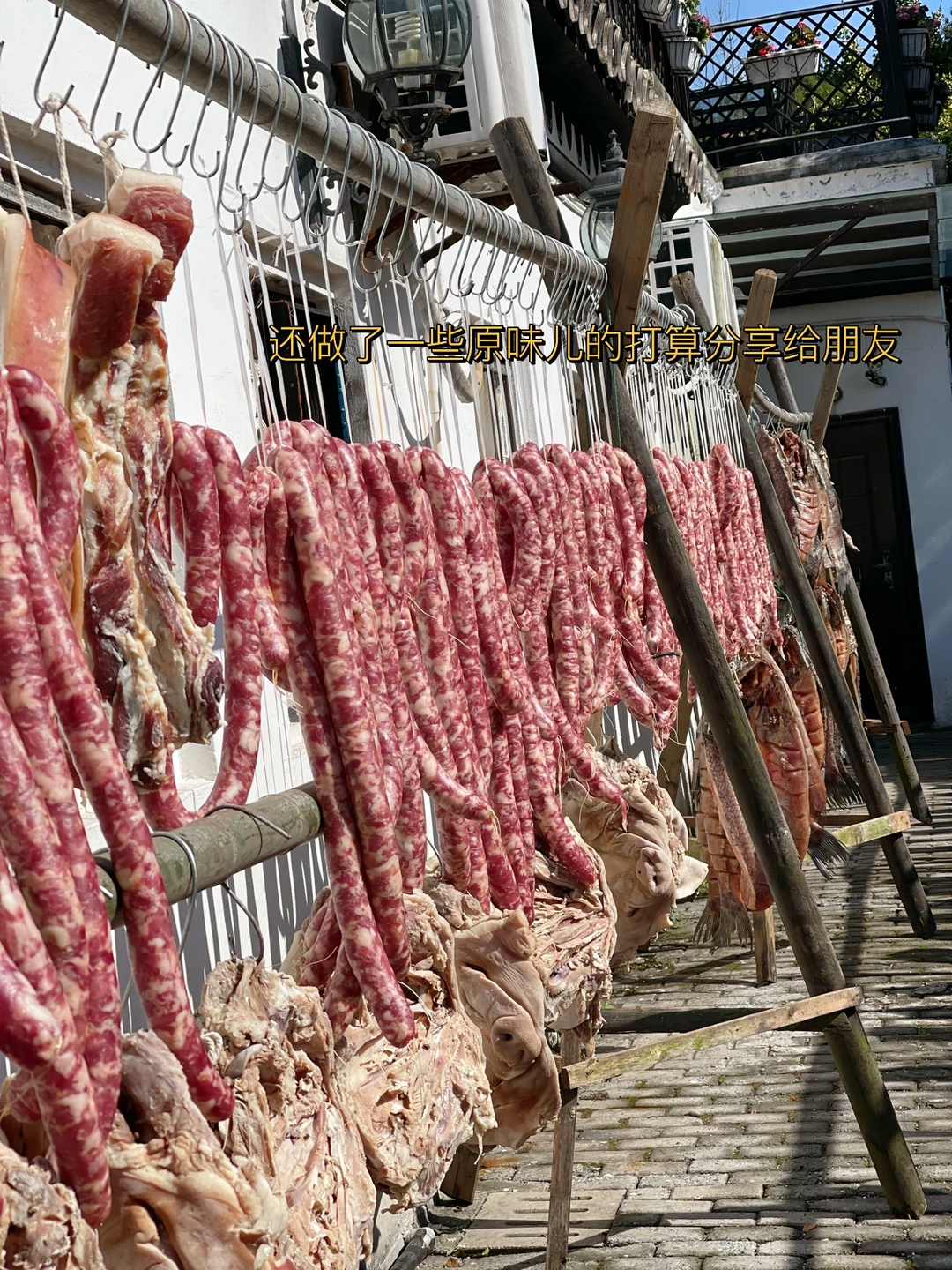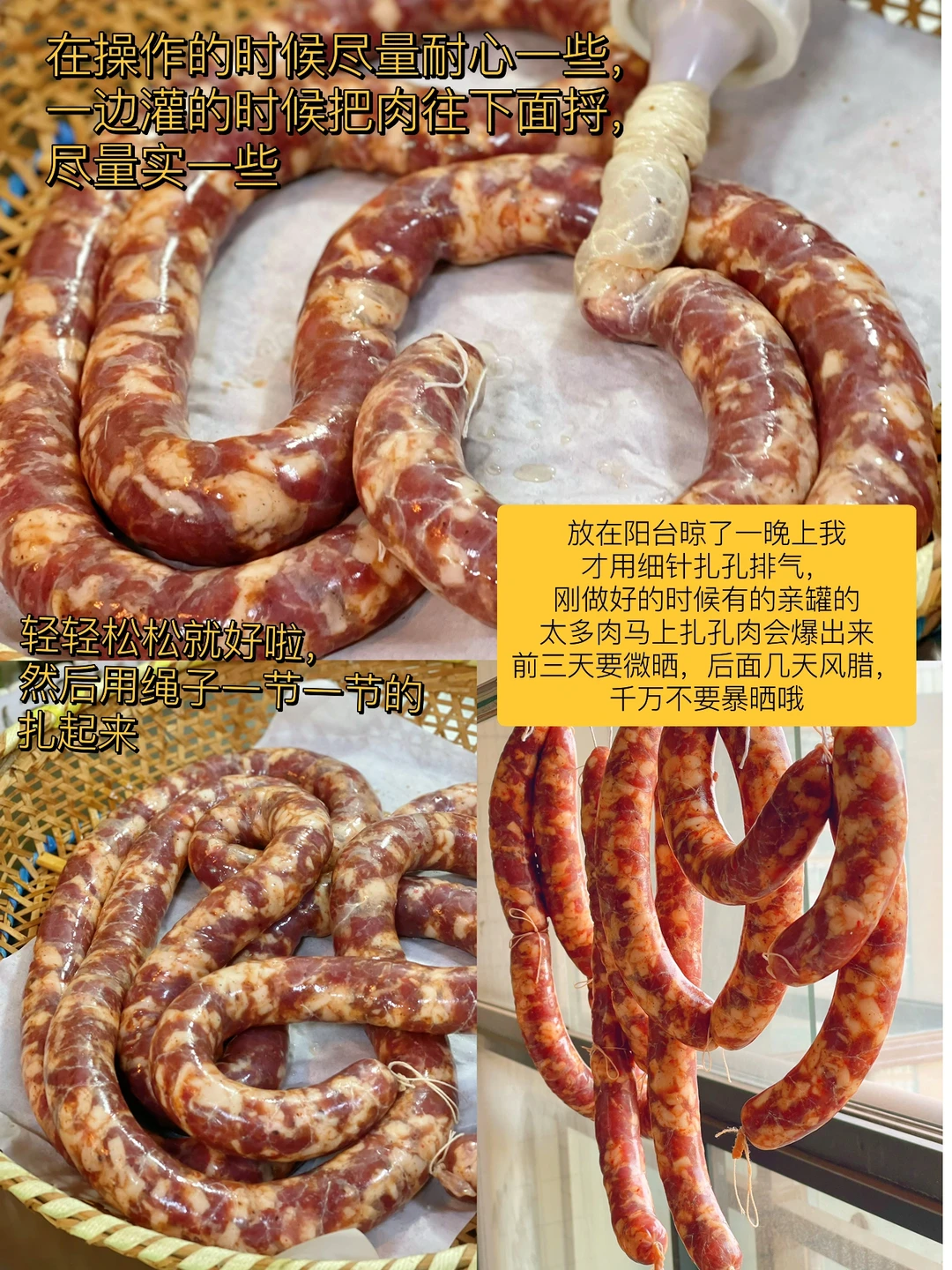 刚做好的时候有的亲罐的太多肉马上扎孔肉会爆出来前三天要微晒,后面几天风腊,千万不要暴晒哦