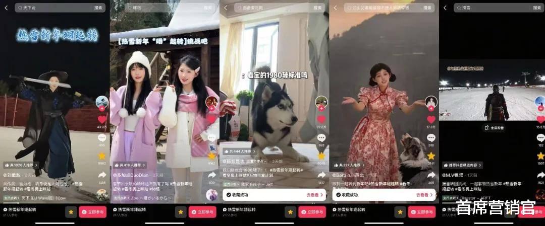 更关键的是,咪咕并未将“转体”局限于赛场,而是通过「热雪新年 翊起转」全民挑战赛,将专业竞技动作转化为普通用户可参与的社交形式。该挑战赛自抖音、小红书、微博、滑呗等多个平台启动后,凭借明星、KOL的自发卷入,诞生爆款内容多条,爆款内容互动量接近200万,实现了从“单向传播”到“全民共创”的裂变。